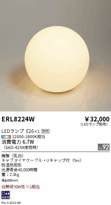 ランプ別売LEDランプ×1(別売)100V白熱球50W形×1相当消費電力:6.7W(無線調光)樹脂(乳白)重2.3kgキャブタイヤケーブル・Uキャップ付(5m)防湿防雨形径φ380mm推奨ランプ:SAD-425X(E26)【LED照明】 【ランプ別売】 【防雨】 【防湿】検索用カテゴリ369