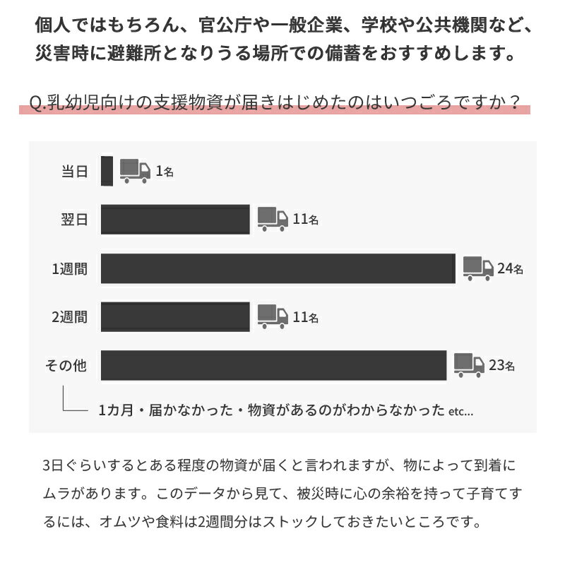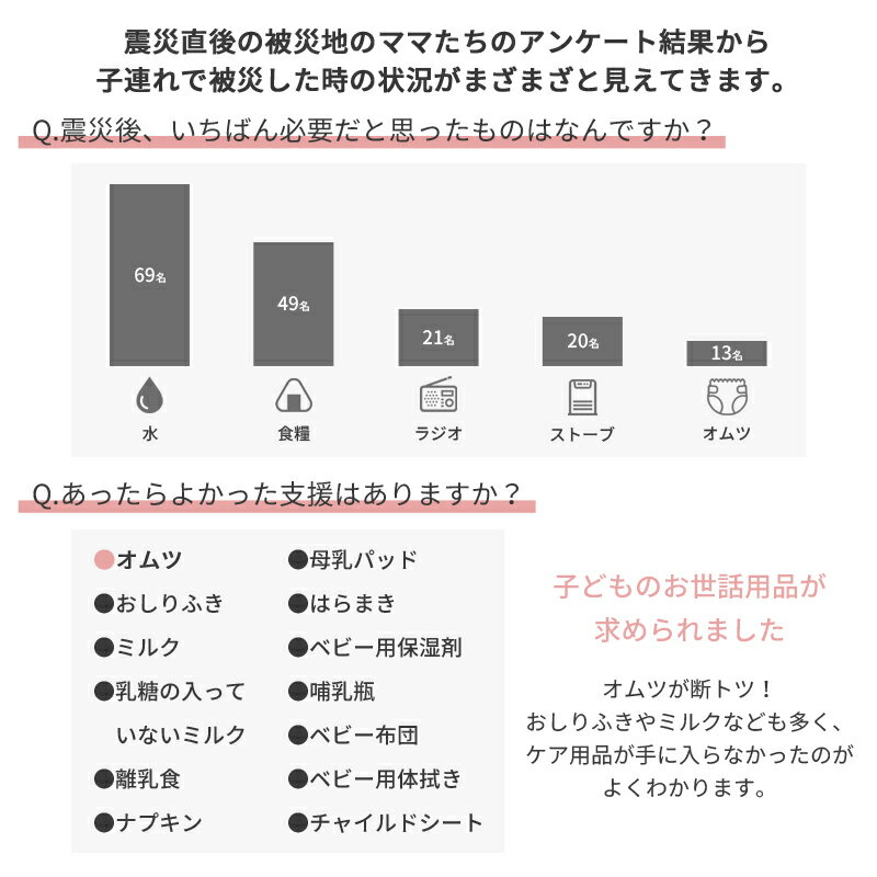 ◎備蓄おすすめ場所災害時、避難所となる可能性の高い施設にもオムツを用意しておく必要があります。・介護施設・病院・学校・公民館など■製品仕様サイズ:Lサイズタイプ:パンツタイプ適応体重:9〜14kg内容量:176枚(44枚×4パック)梱包サイズ:W540×D370×H430mm■製品特徴・本製品は、おむつを保護するために、酸化アルミ透明蒸着多層特殊フィルムで密封包装+梱包加工することで、長期保証を可能としています。※圧縮はしておりませんので、サイズはそのままです。・特殊フィルムが害虫やカビからおむつを守ります。・真空パックなので水害時、浸水しても乾いたおむつが清潔にお使いいただけます。■備考※直射日光および高温多湿をさけて保管し、揮発性のある物質(ガソリン・灯油等)と一緒に保管しないようにしてください。※写真はイメージです。メーカーの仕様変更により、入り枚数など予告なく変更となる場合がございます。予めご了承ください。☆官公庁及び一般企業向け備蓄用真空パック包装