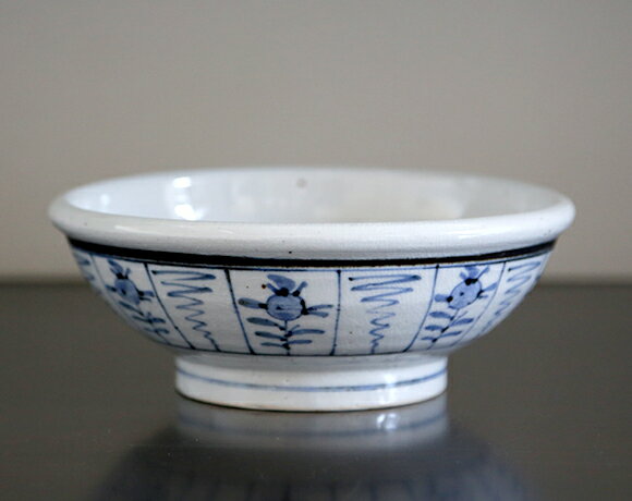 5客セットでのお値段です (径約12 高6.2cm) 化粧箱モダンテイスト溢れる器 異人の図柄でおなじみの青花は、有田のしん窯という窯元から生まれました。丈夫な素地に、全て手描きで表現された藍と白の染付の色合い、そして使いやすい器の形は多くのファンを惹きつけています。そして青花の代表的な文様である「異人」は青花のイメージとして認知されています。 青花ブランドの確立 しん窯は1830年、天保年間に鍋島藩の指導のもと築かれました。長い歴史と由緒ある窯元ですが、1976年に「青花」ブランドを発表しました。青花とは藍色と白の染付の器を意味します。青花の作品は、「形状のおおらかさ」「絵柄の楽しさ・ユニークさ」「呉須の味わい」「釉薬のぬくもり」「暖かくひかえめで飽きのこない暮らしの器」などをテーマとして、皆様の身近で活躍する食器としての役割を担っています。手作り手描きで作られた器作りの姿勢を頑固なまでに守りながら、これからも普段使いの器、暮らしの器を皆様に提供していく窯です。 しん窯 青花の商品は現在入手可能なものは全て特価にてご注文頂けます。当店取扱のしん窯 青花作品の一覧はコチラです→商品ページに掲載されていない作品をご所望のお客様、是非、お気軽に ec@takatoh.comまでお問い合わせ下さいませ。青花の作品は注文数などを制限しておりません。基本的にはご注文をお受けしてからメーカーに在庫確認を致します。メーカーに在庫の無い場合は製作に1?2ヶ月のお時間を頂戴しております。・唐草異人・草花異人・濃唐草帆船・丸紋つなぎ・麺とパスタ・長崎紋・間取異人・渕濃帆船・大航海・牡丹帆船・江戸紋・紅毛人・オランダ万才・二人異人・グラス異人・飯碗・湯呑・コーヒー碗皿・アイテム・インテリア・小物・パーソナルギフト・急須・青花のタジン鍋