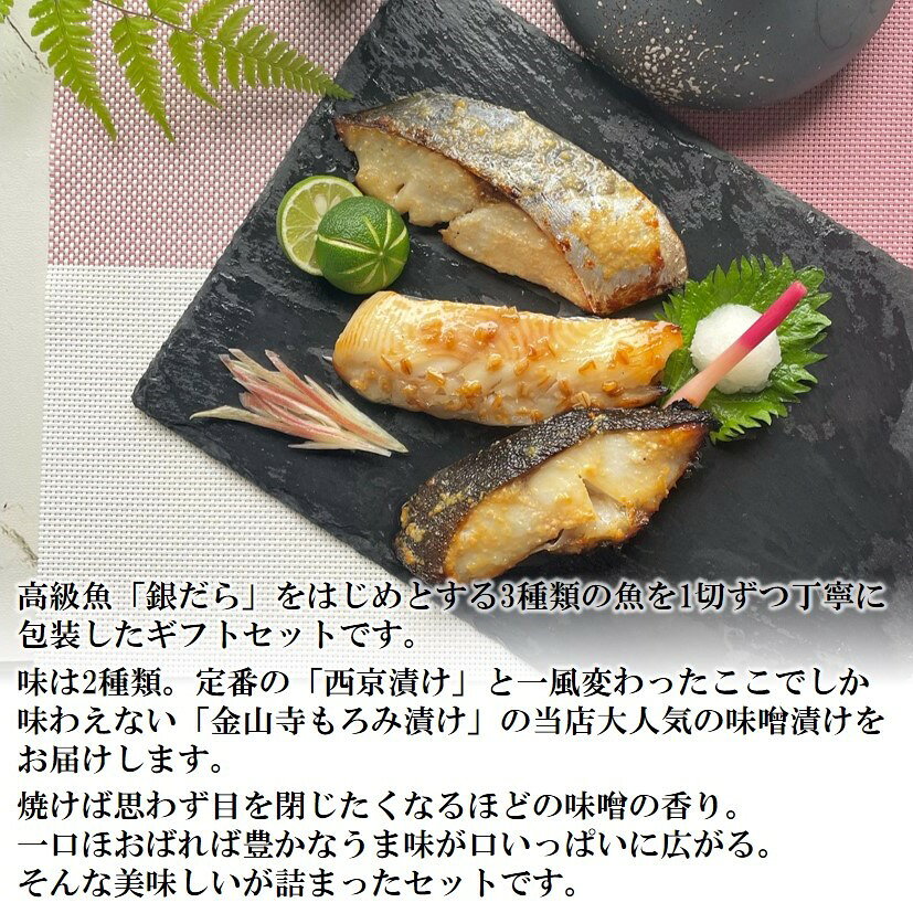魚 ギフト プレゼント 【送料無料】 漬け魚 ギフト 食べ比べ セット 3種 2切 計6切入り 魚 ギフト 焼き魚 詰め合わせ 魚セット 個包装 帰省 高級 食べ物 お取り寄せ グルメ お祝い 西京漬け 西京焼き 結婚 お返し 食品 おかず