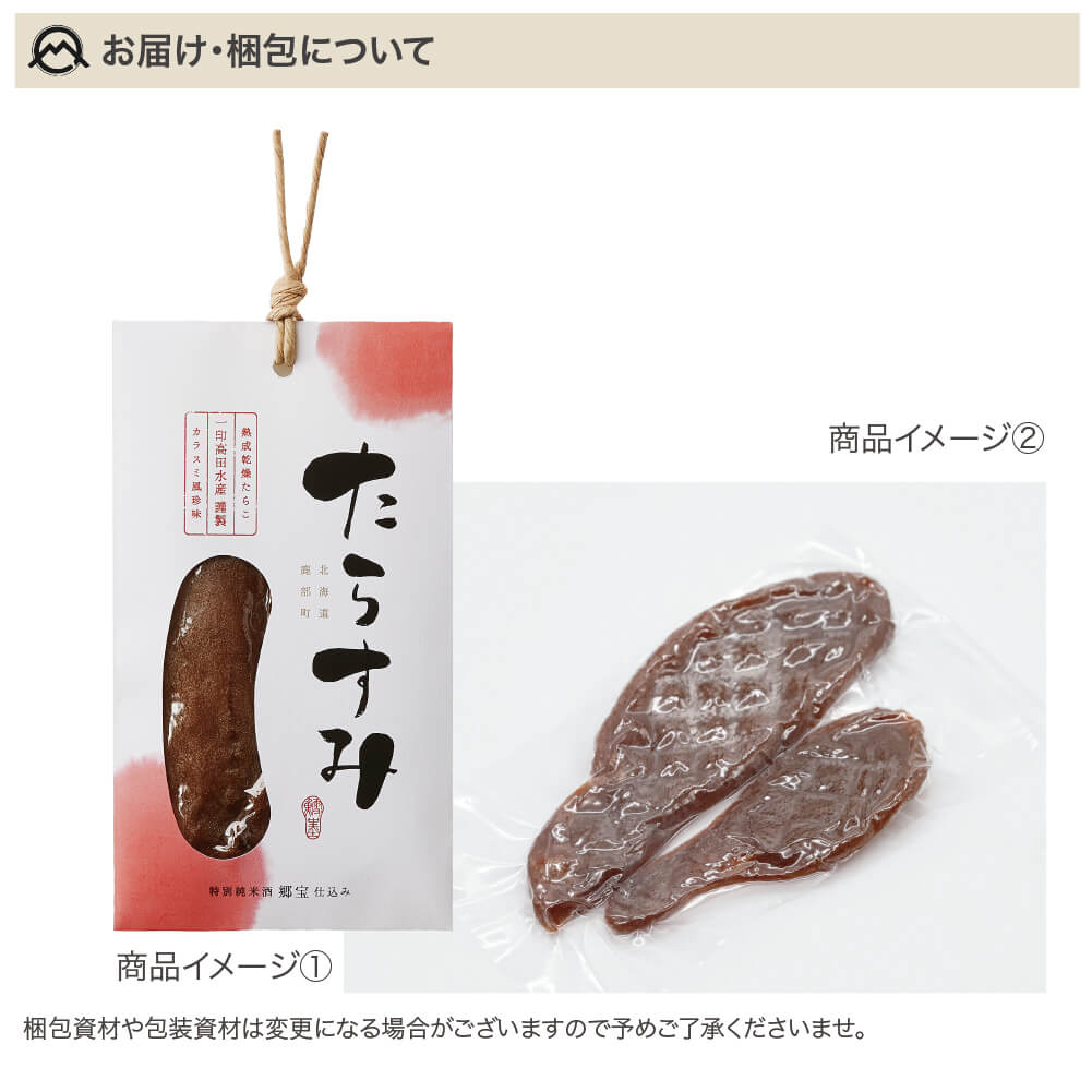 商品詳細情報 商品名 魚卵加工品(タラスミ) 原材料 販売元・製造元 "有限会社一印高田水産 北海道茅部郡鹿部町字本別15番地" 発送目安 2:2~5営業日 賞味期限 常温保存90日 保存方法 常温保存(高温多湿・直射日光を避けて保存してください。) 内容量 30g 備考 高温多湿避けてできるだけ涼しい室内で保管 一印高田水産 の関連商品 Petitタラスミ 30g×2 Petitタラスミ 30g×3 Petitタラスミ 30g×5 Petitタラスミ 30g×10 昔懐かしの寒風干し棒鱈 棒たら 5本 昔懐かしの寒風干し棒鱈 棒たら 10本 昔懐かしの寒風干し棒鱈 棒たら 15本 昔懐かしの寒風干し棒鱈 棒たら 20本 噴火湾産 お刺身ホタテ 300g (冷凍)