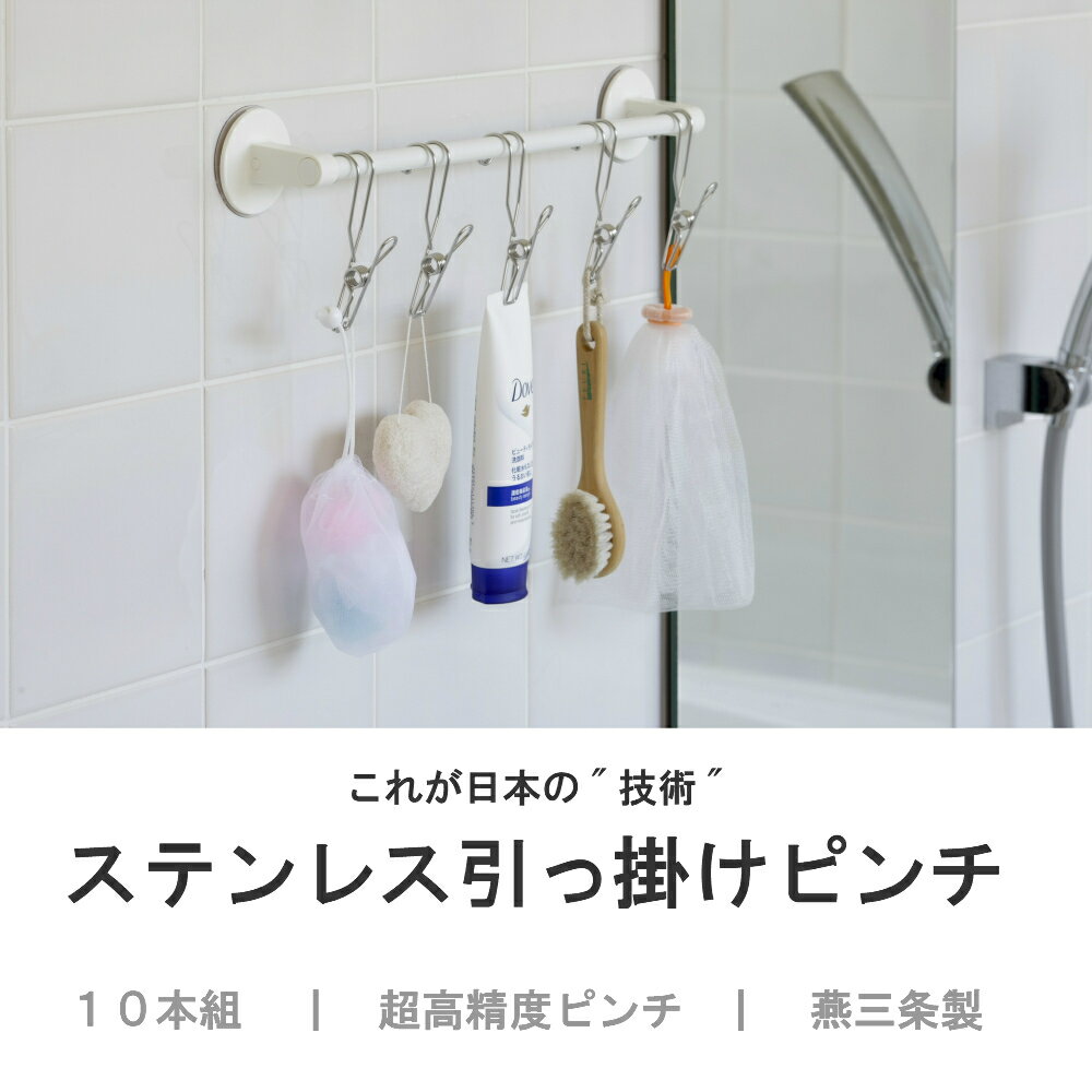 【国産】ステンレスピンチ 10個組 ステンレス製 引っ掛けピンチ オールステンレス製 壁掛け 18-8ステンレス 洗濯ばさみ クリップ はさむ 耐久性 キッチン ランドリー 風呂場 日本製 国産