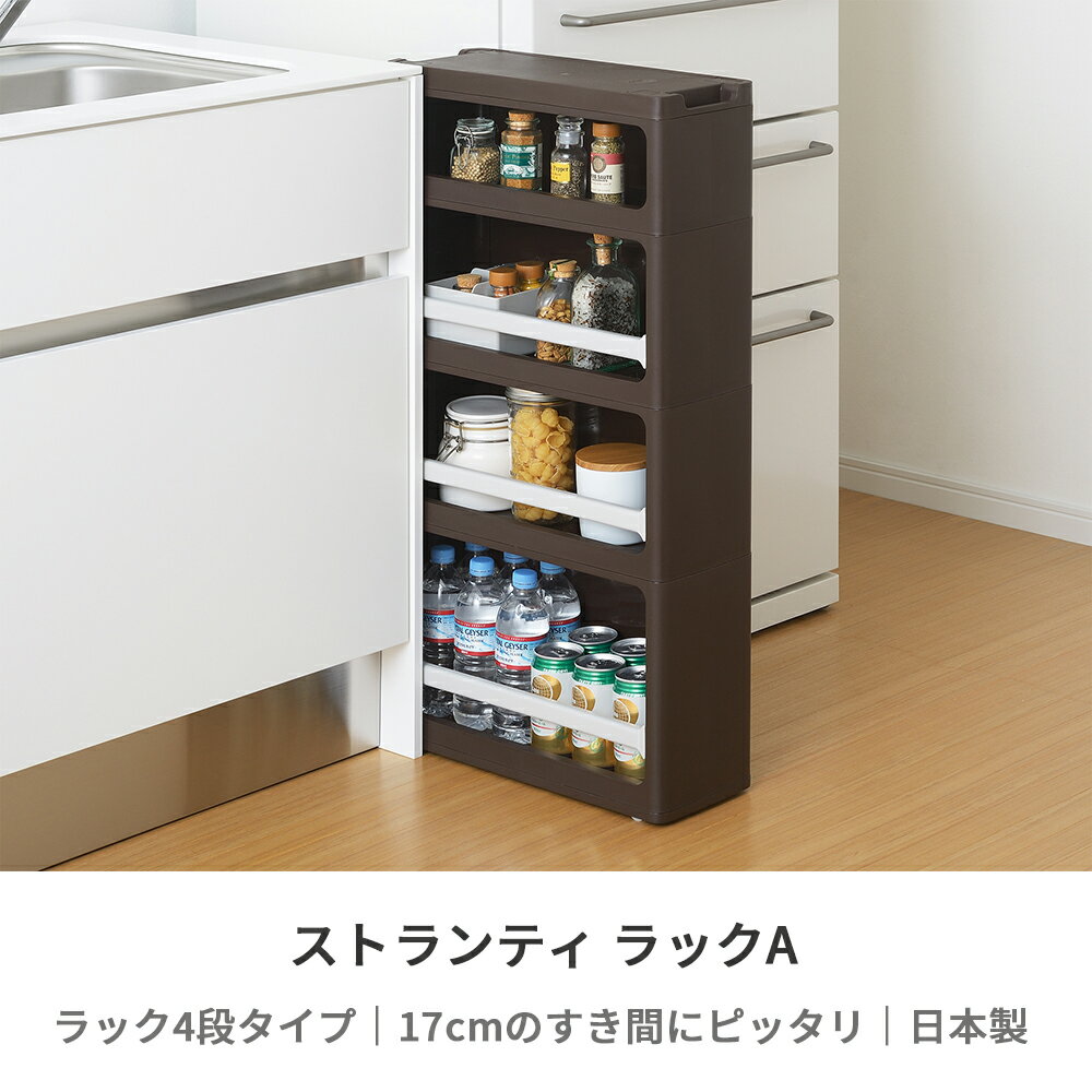 すき間収納 隙間収納 ストランティ 幅17cm スリム ラックA ラック 4段 コロ付き すき間 隙間 収納ケース 収納ボックス キッチン ランドリー 洗面台 日本製 国産