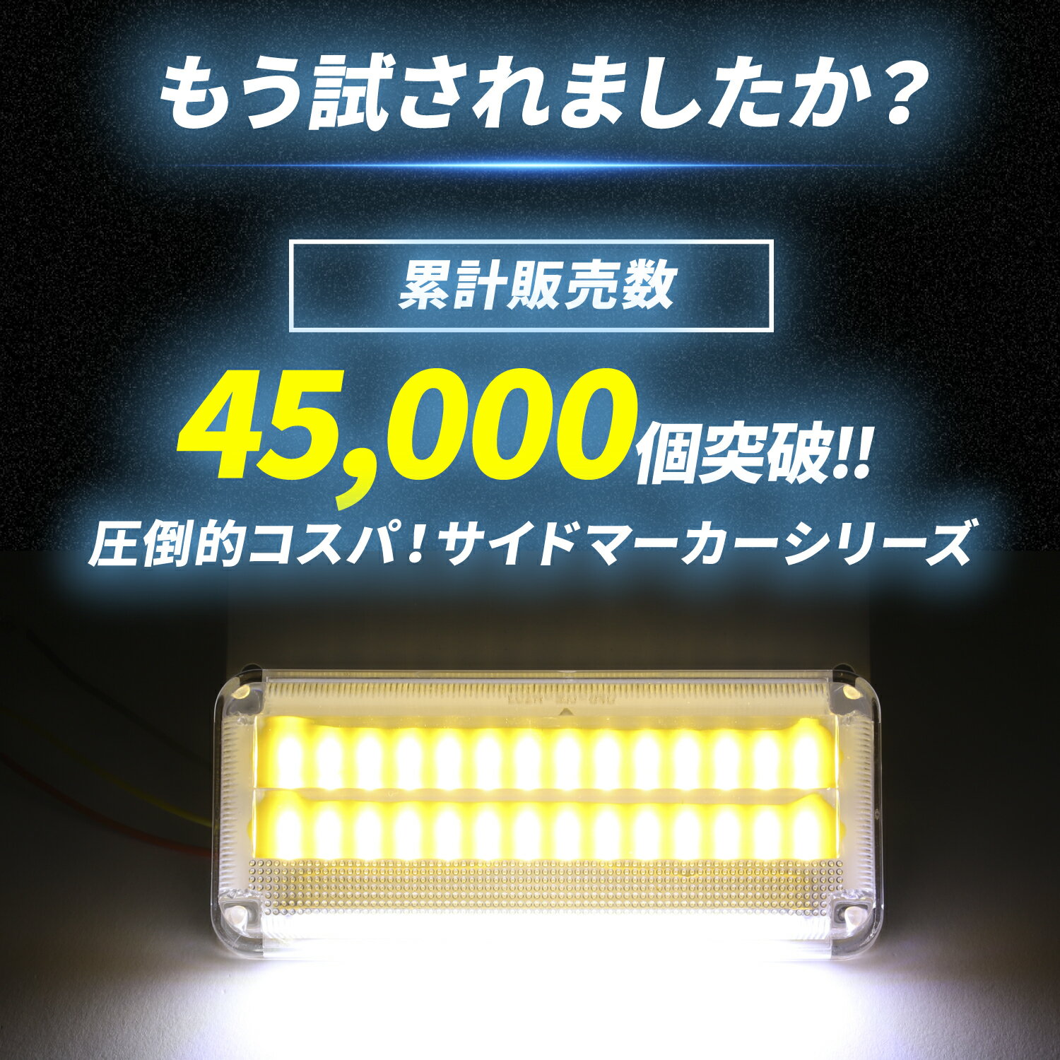 選ばれる3つのポイント! 1つ目【想像以上に明るいダウンライト付きサイドマーカー】 高輝度LEDを採用している、サイドマーカーなので、想像以上の明るさを実現。 さらにダウンライト付きで、夜間や悪天候時でも足元や周囲をしっかり照らします。 2つ目【ダウンライト付きで真下も明るい】 サイドマーカーだけでは照らしにくい車両の真下も、高輝度LEDを採用しているダウンライトがしっかりと照らしてくれます。 夜間や悪天候時でも足元の視認性が向上し、安心してご利用いただけます。 3つ目【圧倒的なコストパフォーマンス】 トラックなど多数のサイドマーカーを必要とする車両にも対応できるよう、価格にも徹底的にこだわりました。 その結果、圧倒的なコストパフォーマンスを実現しています。 商品詳細 メーカー竹村商会 消費電力・ダウンライト(赤線):4w・強光(黄線):3w・弱光(白線):1.5w 対応電圧12V専用/24V専用 防水簡易防水仕様 付属品取付ステー・ビス一式