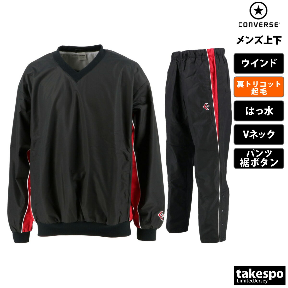 スーパーセール最大3000円オフクーポン有! コンバース ウインドブレーカー 上下 メンズ セットアップ ブランド CONVERSE CB182113S 裏トリコット起毛 バスケ ミニバス ピステ ベンチレーション はっ水 取湿 裾ボタンあり 部活 クラブ チーム Vネック 新作