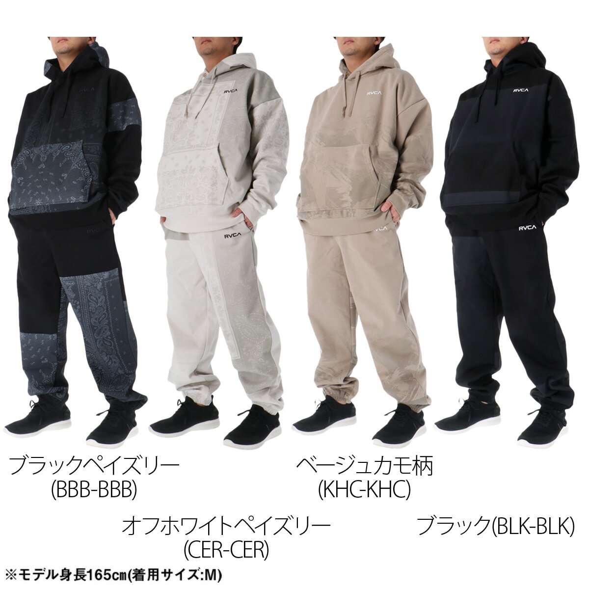 ルーカ スウェット 上下 メンズ セットアップ ブランド RVCA BF042014 フード付き フーディ プルオーバー 裏起毛 裏フリース 防風 はっ水 撥水 ストレッチ ペイズリー バンダナ柄 ゆったり 新作 上下セット 大きいサイズ 有 スポーツウェア トレーニングウェア スポーツ