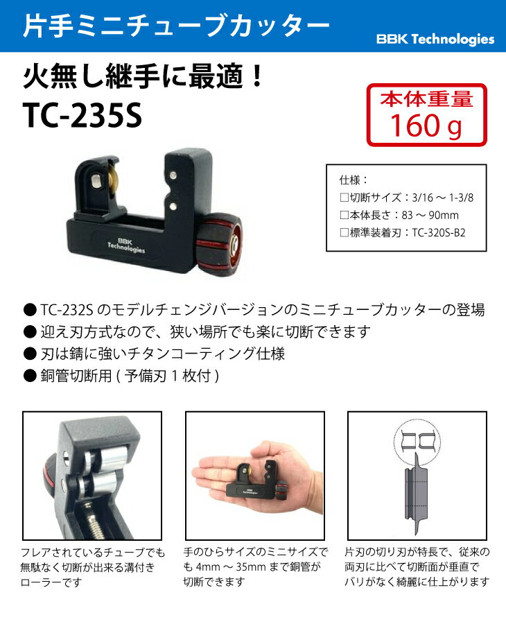 BBK ミニチューブカッター 片刃仕様 TC-235S 銅管切断用 切断サイズ:4~35mm(3/16〜1-3/8)