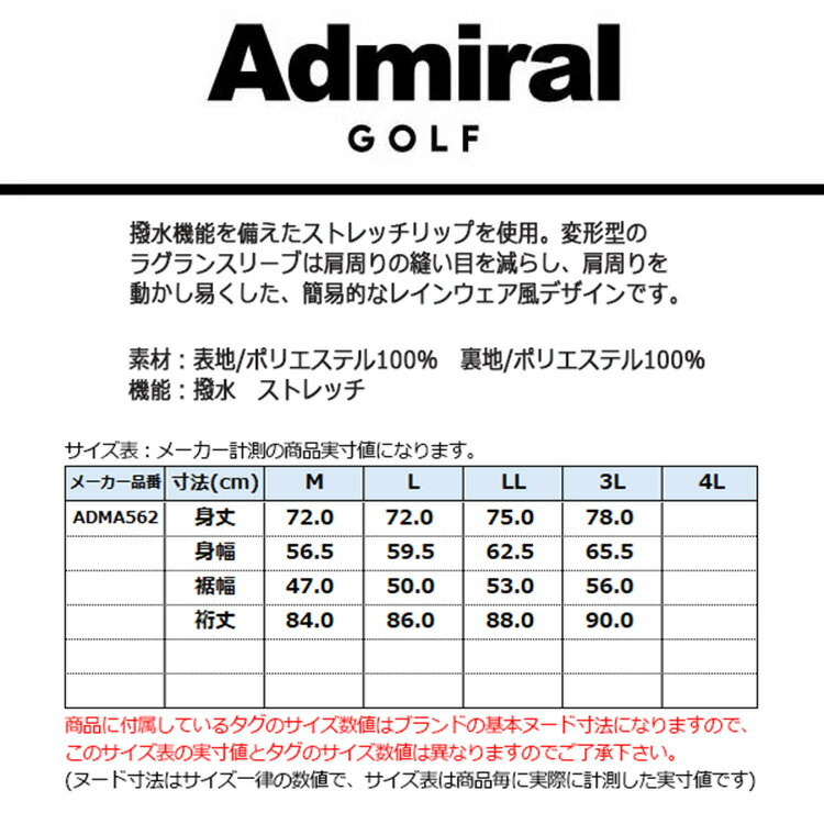アドミラルゴルフ ジャケット メンズ 長袖 フルジップ ウィンドジャケット 撥水 ストレッチ ゴルフウェア ブランド ロゴ 無地 ADMA562 Admiral golf
