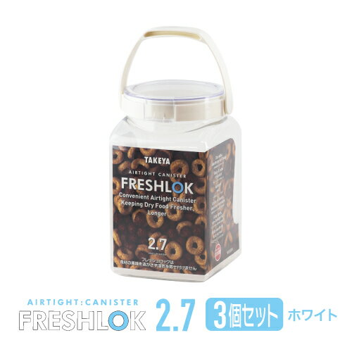 タケヤ フレッシュロック 角型 2.7L お得な3個セット 本体はクリアで衝撃に強く軽い素材。風味を逃がしにくくお手入れをしやすいワンタッチ開閉フタです。 キッチン収納の必需品!小麦粉などの保存にとっても便利! ◆選べるカラー、ホワイト、グリーンの選択が出来ます。 ◆軽くて丈夫、落としても割れにくい本体です。 ◆中身が取り出しやすい広口タイプ! ◆ワンタッチで簡単にフタの開閉ができます。 ◆汚れがつきにくい本体。 ◆透明な上フタを使用しているので、上面から見て内容物が確認できます。 ◆小麦粉・さとうなどの粉類はもちろんペットフードの保存にもご使用いただけます。 ◆便利な持ち手つきで持ちやすくなりました。 ◆本体の耐熱温度は60度です。 熱湯を入れたり、食器洗い乾燥機でのご使用はお避け下さい。 ご使用前には取扱説明書をよくお読みください。 ●容量:2.7L ●サイズ:幅130mmX奥行き155mmX高さ210mm 重量239g ★目安容量★ 小麦粉:1.4kg パン粉:600g プロテイン:1.0kg グラノーラ:800g ●本体:PET 耐熱温度60℃ 耐冷温度-20℃ ●中フタ:ポリプロピレン 耐熱温度120℃ 耐冷温度-20℃ ●上フタ:飽和ポリエステル樹脂 耐熱温度100℃ 耐冷温度-20℃ ●パッキン:シリコーンゴム 耐熱温度140℃ 耐冷温度-20℃ ※掲載されている製品のカラーはお使いのディスプレイやスマートフォンの設定などによって実際の製品カラーとは異なって見える場合がありますのでご了承ください。