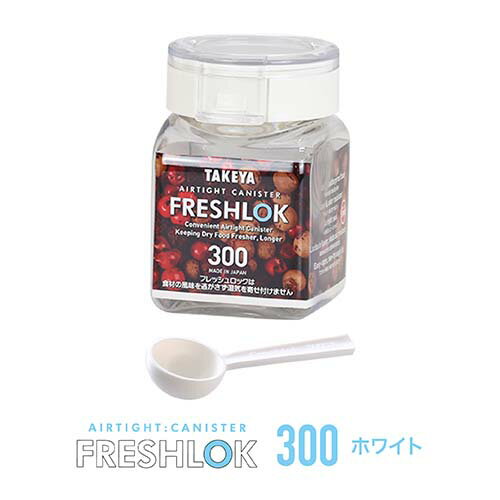 【送料無料】タケヤ フレッシュロック 角型300ml【6個セット】スプーンプレゼント! 本体はクリアで衝撃に強く軽い素材。風味を逃がしにくくお手入れをしやすいワンタッチ開閉フタです。 キッチン収納の必需品!片栗粉や昆布だしなどの保存に便利です! ◆選べるカラー、チャコールブラウン、ホワイト、グリーンの選択が出来ます。 ◆スプーンの色は、パッキン色と同色となります。 ◆軽くて丈夫、落としても割れにくい本体です。 ◆ワンタッチで簡単にフタの開閉ができます。 ◆汚れがつきにくい本体。 ◆透明な上フタを使用しているので、上面から見て内容物が確認できます。 ◆システムキッチンの引き出しなどに収納できます。 ◆小麦粉・さとうなどの粉類はもちろんドライフードの保存にもご使用いただけます。 ◆鶏がらスープやコンソメ・ゴマなどの保存にも最適です。 ◆スプーンの容量は約5mlです。 ◆本体の耐熱温度は60度です。 熱湯を入れたり、食器洗い乾燥機でのご使用はお避け下さい。 ご使用前には取扱説明書をよくお読みください。 ●容量:300ml ●サイズ:幅68mmX奥行き80mmX高さ104mm 重量80g ★目安容量★ 片栗粉:200g いりゴマ:140g 砂糖:220g ●本体:PET 耐熱温度60℃ 耐冷温度-20℃ ●中フタ:ポリプロピレン 耐熱温度120℃ 耐冷温度-20℃ ●上フタ:飽和ポリエステル樹脂 耐熱温度100℃ 耐冷温度-20℃ ●パッキン:シリコーンゴム 耐熱温度140℃ 耐冷温度-20℃ ●スプーン:ポリプロピレン ※掲載されている製品のカラーはお使いのディスプレイやスマートフォンの設定などによって実際の製品カラーとは異なって見える場合がありますのでご了承ください。