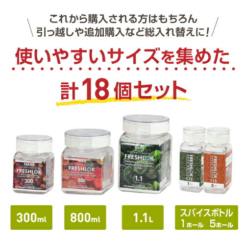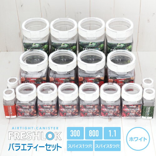 【楽天SS期間中10%オフ】収納のお悩み解決!【送料無料】 タケヤ フレッシュロック バラエティーセット(300×6個、800×4個、1.1×4個、スパイス各2個) スパイス キャニスター 調味料入れ 保存容器 密閉 プラスチック キッチン 高気密性 FRESHLOK 日本製 おしゃれ