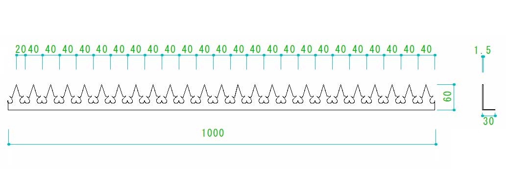 忍び返し 屋外 防犯 ギザギザハート【高さ6cm長さ1M】 ステンレス製 ブラック L型 ミニフェンス