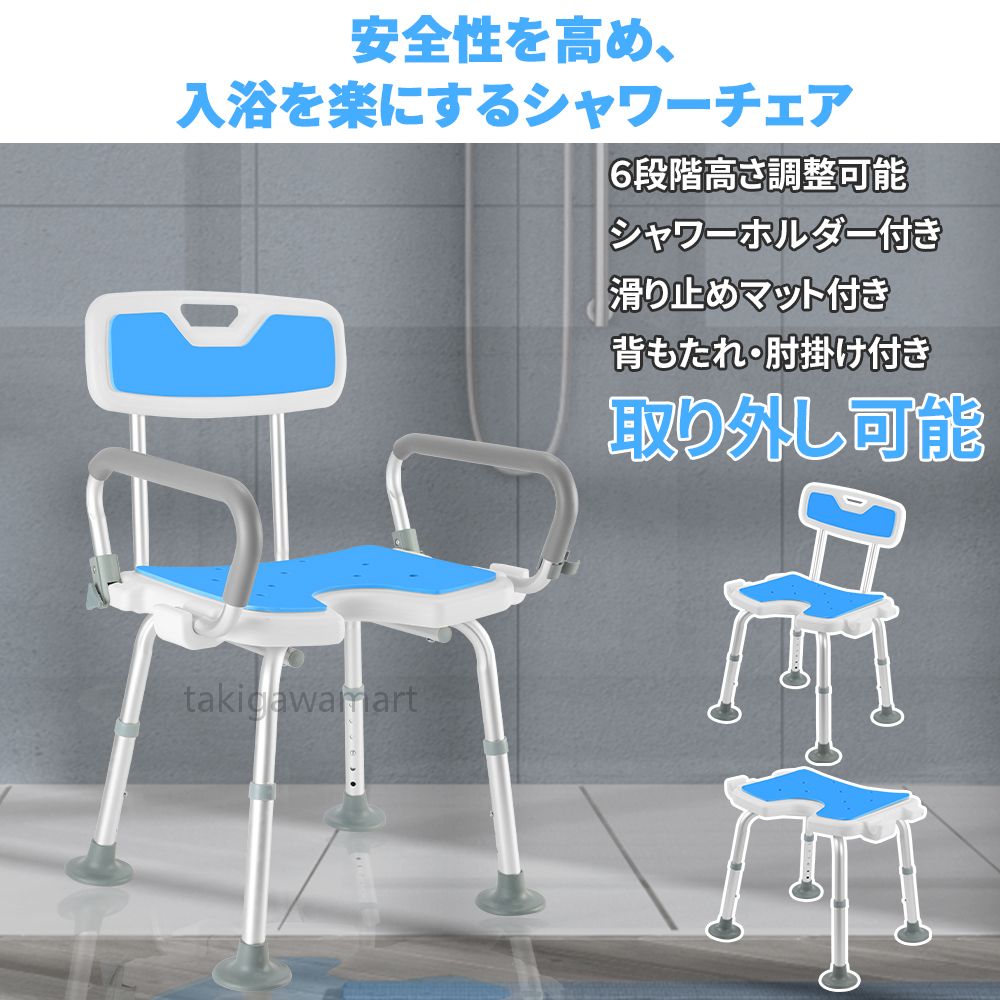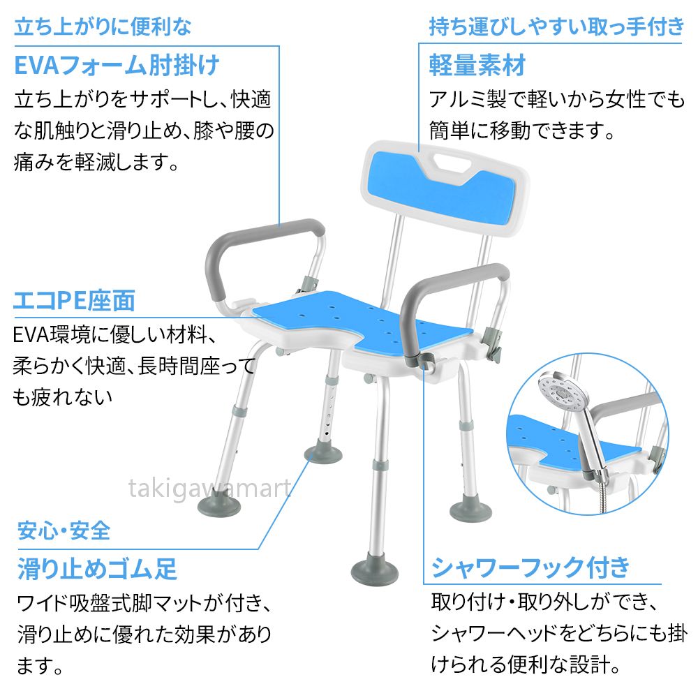 シャワーチェア 風呂イス 介護 入浴用 肘 バスチェア シャワーベンチ 風呂椅子 お風呂 背もたれ付き 高さ6段階調整 防滑ゴム付き 要組立 工具付き
