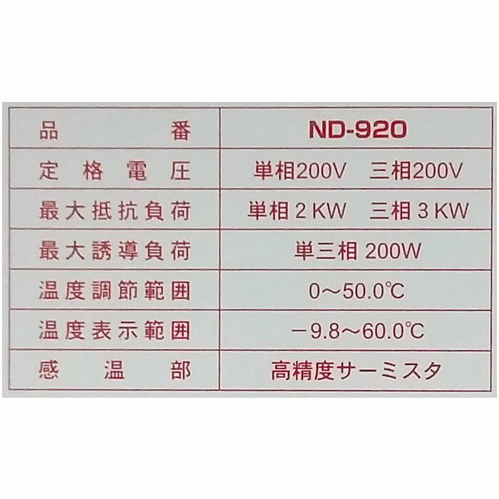 農電デジタルサーモ ND-920 10A・200V単相2kWまたは三相3kW [ヒーター 温度センサー サーモスタット 瀧商店] 農電電子サーモ