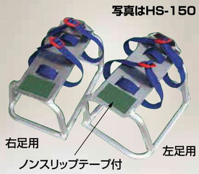 ●アルミ製のゲタは軽量ですから、付けたまま移動でき、踏台などの昇降がいりません。 ●接地面が横へ広いため、倒れにくく安定します。 ●ゆるみにくいバックル式ベルトを採用。 北海道、沖縄、離島へは送料見積りになりますのでご了承ください。◎アルミ製のゲタは軽量なので、付けたまま移動でき、踏台などの昇降がいりません。 ◎設置面が横へ広いため、倒れにくく安定します。 ◎ゆるみにくいバックル式ベルトを採用。 注)装着したまま転倒するとケガをする恐れがあるので、作業は安全を確認しながらゆっくりとおこない、また不整地、 傾斜地やコンクリートなどのすべりやすい場所での使用は危険ですので使用しないでください。着脱はイスに腰掛けておこなうと安全です。 型式 HS-120 HS-150 HS-180 HS-210 高さ 12cm 15cm 18cm 21cm 重量 1.1kg 1.2kg 1.3kg 1.4kg