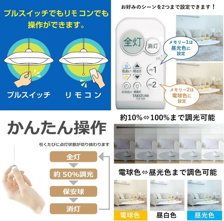 タキズミ(Takizumi) 【省エネ 節電 日本製 5年保証】 省エネ性業界トップクラス LED 和風ペンダントライト 色・明るさ調節可能~8畳 工事不要 簡単取付 リモコン付 プルスイッチ付 GVNR80097