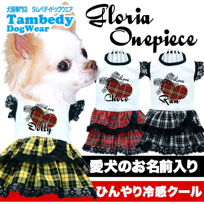 \11月わんわんSALE★開催中/【犬 春夏服用 犬の服 名入れ】ひんやり 接触冷感素材 クール 愛犬のお名前入り グロリアワンピース【レース ハート リボン ペット ダックス トイプードル チワワ タムベディおしゃれ】[GI](H/)
