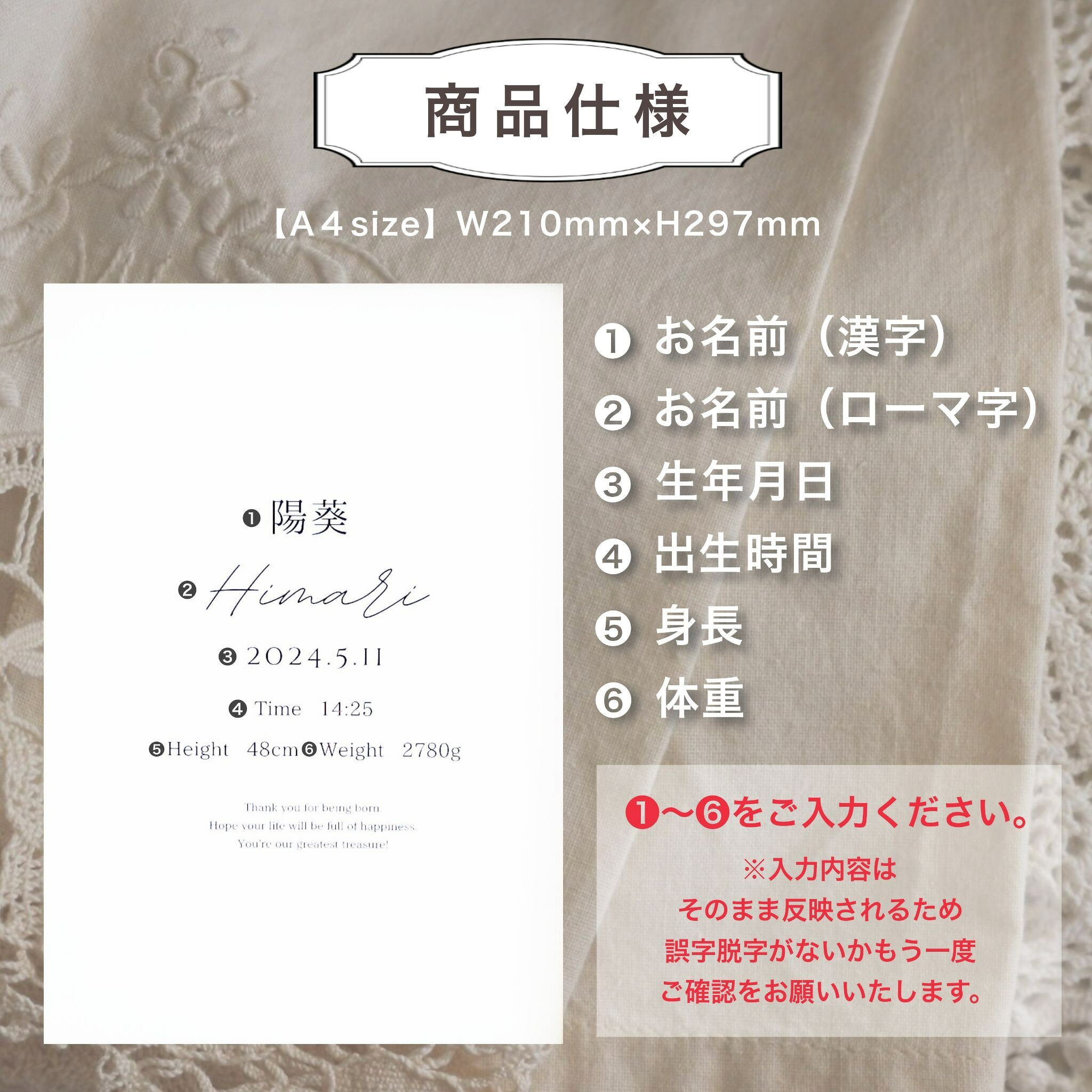 【即納】インテリア命名書 お七夜 赤ちゃん命名書 シンプル ニューボーン メモリアルグッズ 命名 ニューボーンフォト セルフフォト 赤ちゃん 命名書 名入れ お名前 新生児 オリジナル オリジナル命名書 おうちスタジオ 命名用紙 新生児フォト 2枚セット A4サイズ