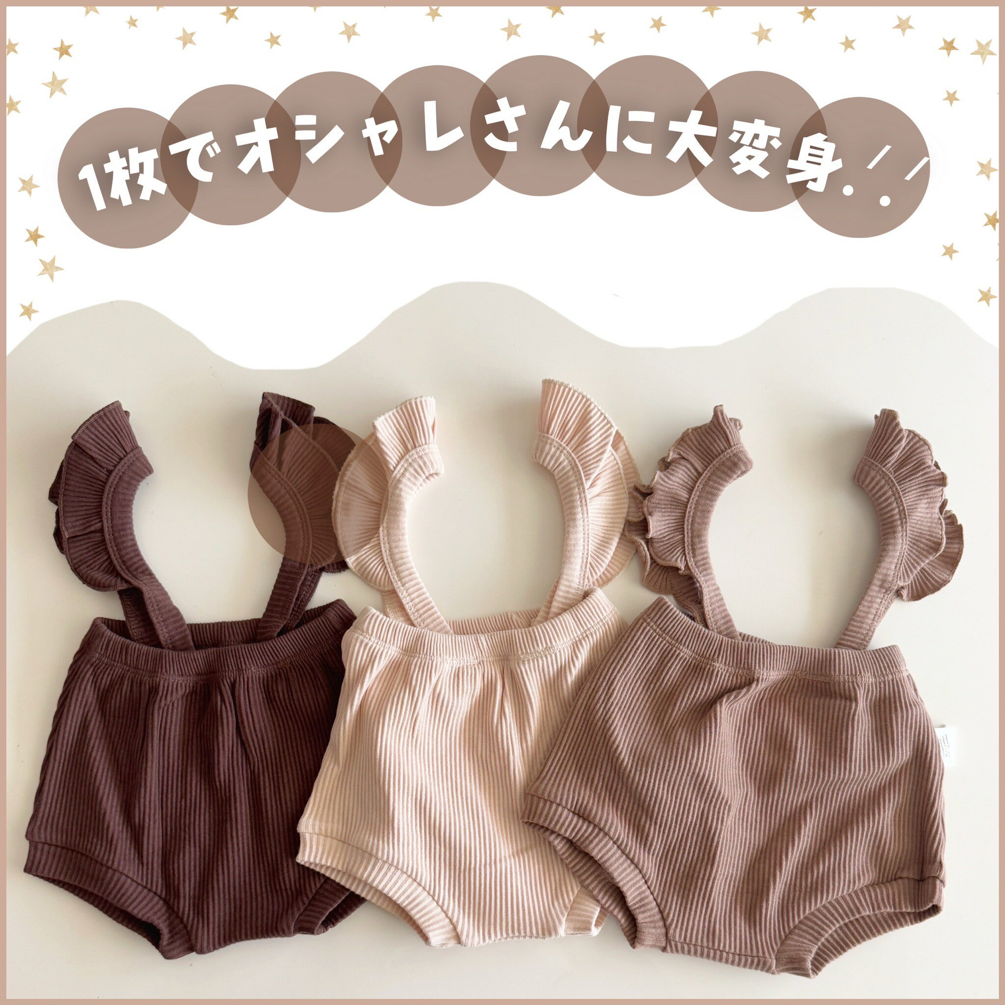 【即納】フリルサスペンダーパンツ カラーパンツ 即日発送 フリルパンツ ブルマ ベビーパンツ コットン 柔らか サスペンダーパンツ リブ生地 女の子 可愛い サロペット 春 夏