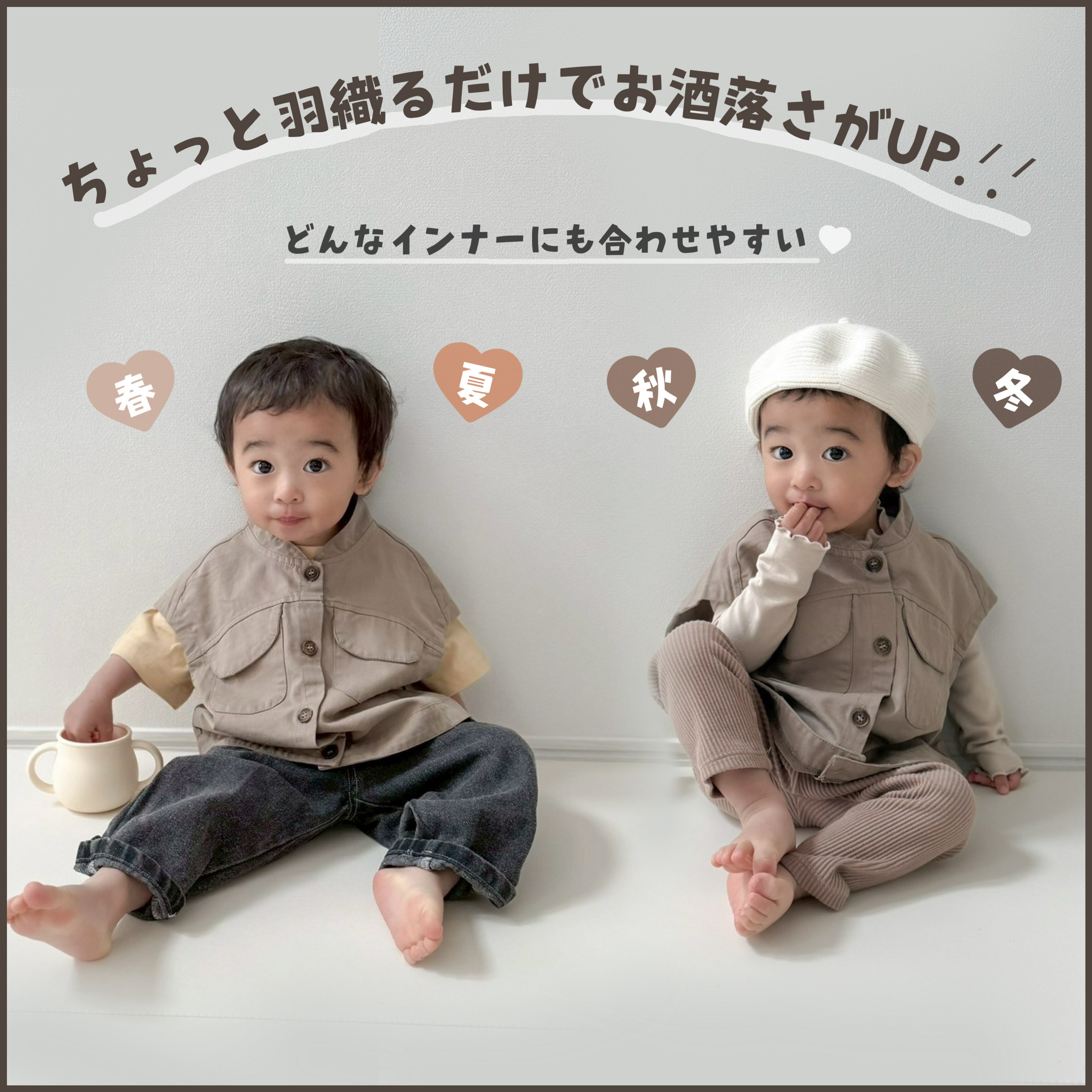 ロンTにも Tシャツにも パーカーにも 羽織るだけで お洒落度UPなベスト.ᐟ.ᐟ オールシーズン使えます! お洒落ママさん必見。 【カラー】 ベージュ ブラウン 【サイズ】 80cm着丈35cm 身幅40cm 90cm 着丈38.5cm 身幅41cm 100cm着丈40.5cm 身幅44cm 110cm 着丈45cm 身幅45.5cm 【素材】 cotton100% 【発送】 13時までのご購入で即日発送致します!! ※日曜日定休日 北海道、沖縄、九州、四国 中国地方は発送の翌々日 その他の地域は翌日到着致します。 群馬県発、クロネコヤマトでの発送となります。 【送料】 350円 複数ご購入の場合は、ご購入商品の中の1番高額な送料のみが加算されます。 【例】 ・ロンパース送料350円 ・セットアップ送料350円 ・出産祝いセット送料500円 この3点ご購入の場合は送料は500円となります。 【日時指定について】 <日時指定できる日> ・本州のお客様、ご購入の翌日から7日後まで。 その他の地域のお客様は翌々日から8日後まで。 <指定時間> 1 午前中 2 14時〜16時 3 16時〜18時 4 18時〜20時 5 19時〜21時 クロネコヤマトでの発送となります。 【値札 明細書について】 当店ではプレゼントやギフトに使われるお客様が多いため、値札は全商品ついておりません。 また明細書もエコロジーと個人情報漏洩防止のため発行しておりません。 直接そのままプレゼントとして送ることが可能です。 【ラッピングについて】