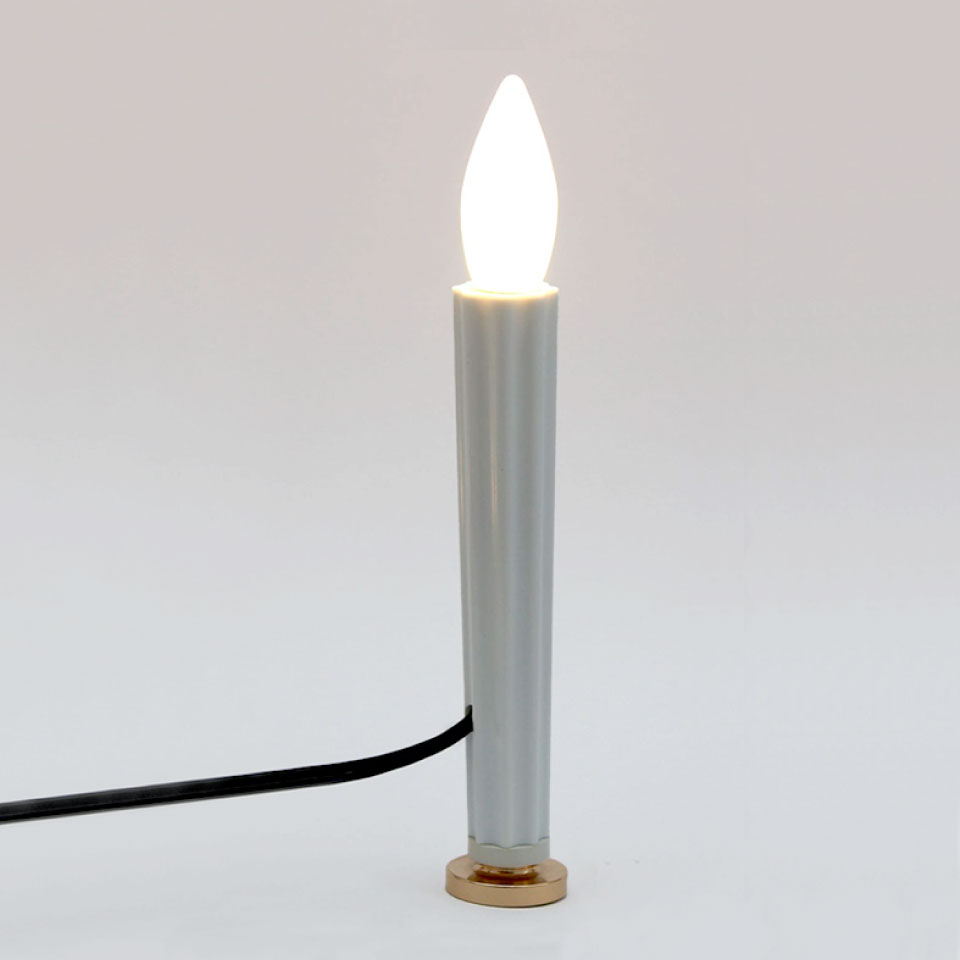 【材質】プラスチック / ゴム(底部分) 【電源形態】コンセント(ロータリースイッチ式) 【使用ランプ】LED電球 【サイズ】 ・135型 本体:高さ 約19cm × 最大幅 約2.6cm 電球:高さ 約4.7cm コードの長さ:全長 約190cm ・170型 本体:高さ 約23cm × 最大幅 約2.8cm 電球:高さ 約5.8cm コードの長さ:全長 約245cm 【配送について】 発送箱の大きさの関係で外装を一部切り取って発送する可能性がございます。 ※別途ロウソク立てが必要な商品です。 ※お使いのモニターの発色具合によって、色合いが実際のものと多少異なる場合がございます。 ※本製品は輸送中の振動等により電球部分がゆるむ場合がございます。お手元に届きましたら、電球を垂直になるようにしっかりとお締め直しくださいますようお願い申し上げます。 なお、電球部分は軽く指で押すと角度をご調整いただけます。電気コード式 LED ろうそく 2本セット 安全に配慮した仏前ろうそく火を使わず安心、安全性に配慮したLED電気コード式ろうそくです。 従来の白熱電球は熱をもち高温になりましたが、LED電球は発光時ほんのり温かい程度です。 消費電力も大幅カット。 さらに、従来の白熱電球は電球部分がガラスのため、うっかりろうそく立てを倒した際、電球が割れる危険性ありました。 LED電球は、プラスチック樹脂でできているため、電球が割れる可能性が大幅に低下しました。 また、電気コード式ろうそくは、定期的な電池交換の必要がないため、手間がかかりません。 中型仏壇に最適なサイズです。 むずかしい操作は一切不要!電気の入切が手元でできる、ロータリースイッチ式を採用しています。ロータリースイッチを一方向に回してお使いください。電気を消すために、電源プラグをコンセントからわざわざ抜く必要はありません。 底部には、燭台に刺せるゴム製の穴ほとんどのろうそく立て(火立て・燭台)には、ろうそくを挿すための尖ったピンが付いています。 電気コード式ろうそくも、一般のろうそくと同様に底部にゴム製の穴が開いており、ピンが刺さる仕組みになっております。 ろうそく立てと合わせてご使用ください。 長寿命なLED電球電球にはLEDを使用しました。通常の電球よりも長持ちするため経済的で、お取替えの手間も省けます。プラスチック製ですので、誤って倒してしまっても割れません。