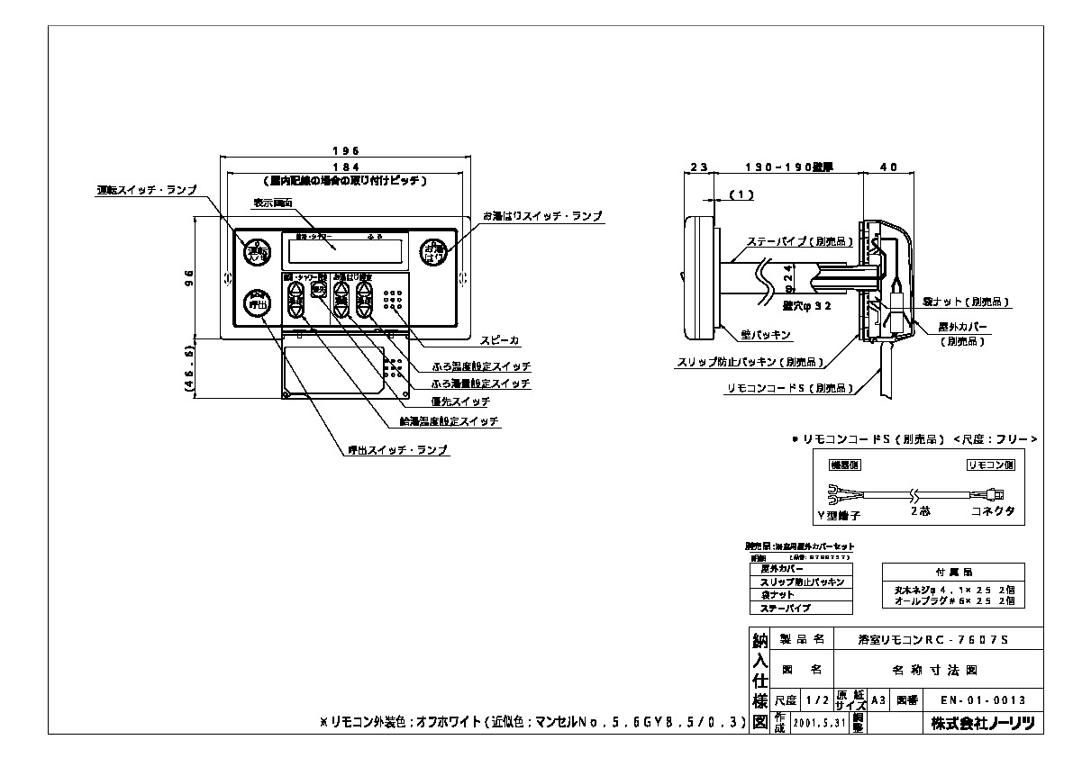 【地域に拠りあす楽 在庫あり】ノーリツ RC-7607S : 浴室リモコン (防水型増設リモコン) 通常在庫品 ∴