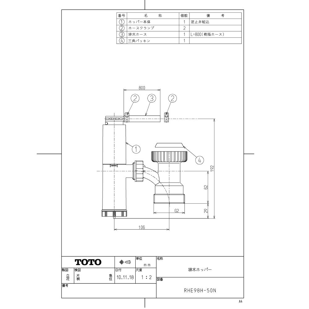【地域に拠りあす楽 在庫あり】TOTO RHE98H50N : 排水ホッパー 密閉式 (先止必) ∴
