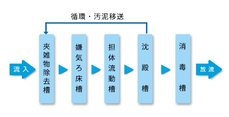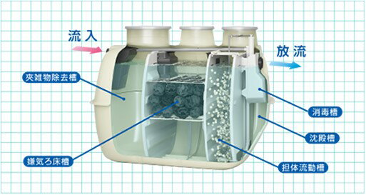 コンパクト設計。掘削量も少なく、工事費の節減にも貢献。 ブロワ配管が1系統で済むため、槽の設置が一段とスムーズに。 BODはもちろんT-Nも除去。さらにCODの性能評価も取得。 内部構造のシンプル化により、トラブルが少なく点検も容易に。 処理対象人員(人) 20 日平均汚水量(m3/日) 4.0 本体寸法(mm) 長さA 3.255 幅B 1,870 高さC 1,920〈※1 1,950〉 マンホールmm(個) φ450(4) 嵩上げ付属(個) φ450x300(4) マンホールカバー材質プラスチックまたは鋳鉄 流入・放流管径(mm)φ125 流入管底(mm)450〈※1 480〉 放流管底(mm)550〈※1 580〉 送気口径(mm)φ20 容量(m3) 夾雑物除去槽 2.366 嫌気ろ床槽 2.372 担体流動槽 1.082 沈殿槽 0.481 消毒槽 0.044 総容量 6.345 ブロワ50/60Hz 方式 電磁ダイアフラム式 型式 TKO-150 吐出風量(L/分) 150 消費電力(W)115/125 吐出口径 φ20 製品重量(kg)510 浮上防止金具(本)注2 6