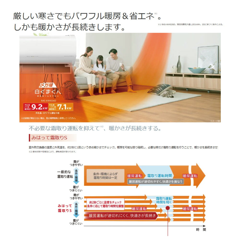 【地域に拠りあす楽 在庫あり】日立《RAS-XK7126D W》 (RAS-XK7126D-W + RAC-XK7126D)単200V 23畳・R08 .(RAS-XK7125D-Wの後継) : ルームエアコン 寒冷地メガ暖 冷除湿・XKシリーズ∴白くまくん HITACHI しろくまくん