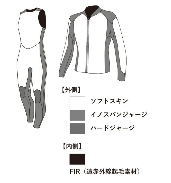 男性用セット販売 GULL 3mm SKIN JACKET & SKIN LONG JOHN ガル 3mmスキンジャケット&スキンロングジョン メンズ GW-6666+GW-6667 *3mmネオプレーン 表:ソフトスキン×イノスパンジャージ/裏:遠赤外線素材FIR採用