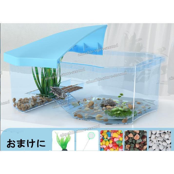 亀の水槽 蓋付き 両生類 カメの楽園 飼育ケース ボックス 日向ぼっこ台 観察 爬虫類 カメ生息地 大空間 亀の楽園 観察 可愛い 階段 エサ皿