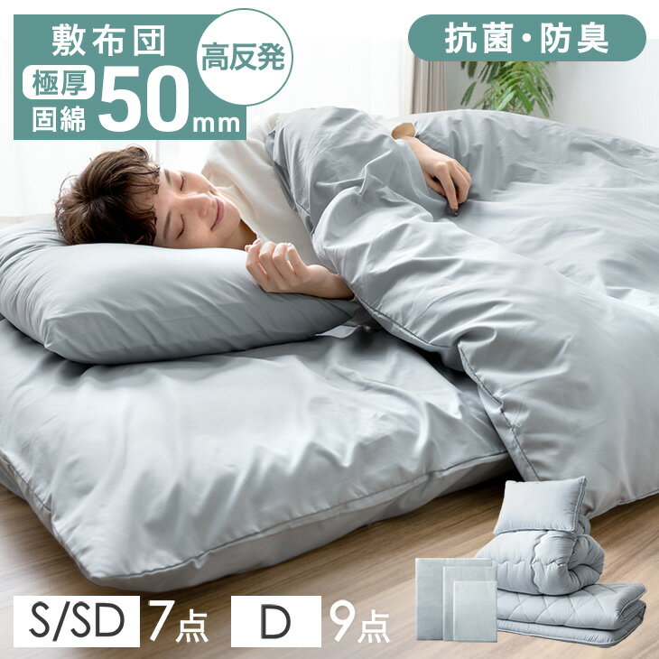 >>羽毛布団の【洗濯方法 手引き】をチェック!<< >>お申し込み・詳細ページはこちら<< ワンランク上の寝心地▼ ダウン90%/10cm厚マットレス ▼カバー付き7点セット 一度ハマると抜け出せない。▼ まさに沼。布団セットはこちら ▼ 合わせてもっと快適! ▼綿100%布団カバーはこちら▼ 掛け布団カバー 敷布団カバー 枕カバー ▼ 布団収納ラックもございます ▼ 仕様 サイズ 【掛け布団】150×210cm 【敷布団】100×200cm 【マットレス】91×192×3cm(折りたたみ時:91×32×18cm) 【枕】43×63cm 充填量 【掛け布団】約1kg 【敷布団】約2.5kg 【枕】約0.5kg 素材 【掛け布団】 側地:綿15%、ポリエステル85% 詰め物:ホワイトダックダウン(ダウン50%、フェザー50%) 【敷布団】 巻き綿:ポリエステル100%(抗菌防臭加工) 側地:ポリエステル100% 【マットレス】 中材:高反発ウレタンフォーム(反発弾性:40%±3%) 密度:26D<26kg/m3>190N 側地:ポリエステル100%(ピーチスキン加工) 【枕】 ポリエステル100% 梱包サイズ 51×40×65cm ※圧縮梱包にてお届けいたします 生産国 日本 スタッフナヒのおすすめポイント 【掛け布団】 ・軽くてあったか羽毛布団 ・フィット感アップ!30マス立体キルト ・かさ高80mm以上、ダウンパワー220dp ・国内パワーアップ加工でふっかふか! ・SEK認定のアレルGプラスで抗菌効果 ・除菌・防ダニ・防カビ オゾンスペシャルエイド加工 ・コインランドリーで丸洗い&乾燥OK! ・側地は肌触りなめらかピーチスキン加工 ・羽毛の抜け出しを防止するダウンプルーフ加工 ・羽毛の膨らみを妨げない超軽量生地 ・安心の3年保証 【マットレス】 ・腰をやさしく支える高反発マットレス ・側地は肌触りなめらかピーチスキン加工 ・持ち運びらくらく6つ折り 【敷布団】 ・マットレスと合わせて底付感なくふっくら! ・清潔に使える抗菌・防臭 ・ご家庭で丸洗いOK ・安心の品質 日本製 ・ふっくら枕付き 備考 【羽毛布団:3年保証】 ※配送は全て宅配便(1人)での玄関渡しとなります。大型商品や重量商品、エレベーターの無い2階以上にお住まいのお客様は、玄関口までの搬入をお手伝いをお願いしております事をご了承ください。 ※布製品のため、サイズ表記に誤差が生じる場合がございます。あらかじめご了承ください。 ※商品ページの色味は、出来る限り実物に近い色で画像を掲載しておりますが、お使いのブラウザー及びモニターや使用環境により、実際の色と多少の差異があります。予めご了承ください。 送料 【送料無料(北海道・沖縄県・離島は送料別途)】 ※別途送料が必要な場合には、送料をご了承いただいてからの発送となります。 必ずご確認ください ※こちらの商品はメーカー直送のため、ご注文後のキャンセル・変更はできません。
