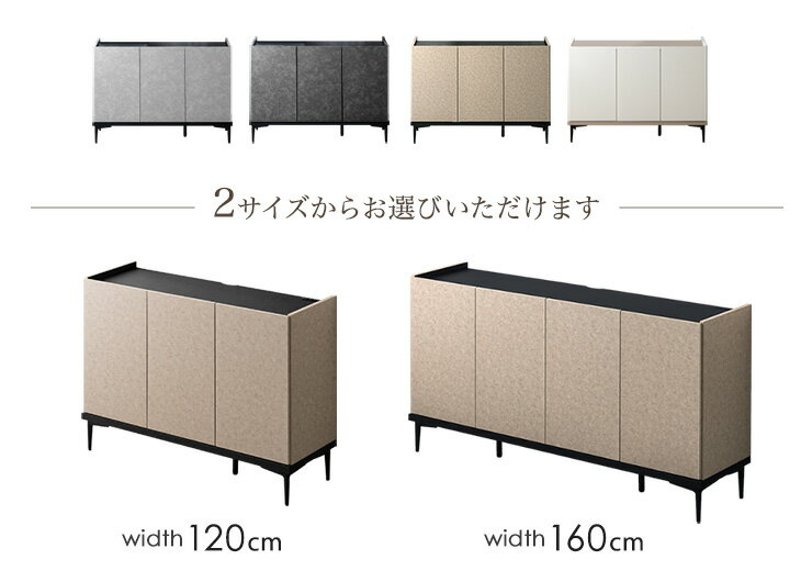 宙に浮いているかのような“フロート感”が魅力の▼ サイドボードもございます ▼幅80/120 傷に強いメラミン天板▼スタイリッシュなストーン調のサイドボードはこちら▼幅80幅120 傷に強いメラミン天板▼木目調/ワントーンのサイドボードもございます▼幅80幅120 まだまだあります! >>サイドボード一覧はこちら<< 仕様 サイズ 外寸 120cm:幅120x奥行40x高さ83cm 160cm:幅160x奥行40x高さ83cm 重量 120cm:約33kg 160cm:約44kg 耐荷重 120cm:天板約20kg、各棚約10kg 160cm:天板約20kg、各棚約10kg 素材 前板:強化紙化粧繊維板 天板・側板・棚板:プリント紙化粧繊維板 背板:MDF 脚部:スチール(粉体塗装) カラー モルタルグレー、モルタルブラック、モルタルベージュ、ミルクアイボリー 梱包サイズ 120cm:幅123×奥行44×高さ70cm 160cm:幅163×奥行44×高さ70cm 生産国 日本(大川家具) スタッフ コウのおすすめポイント お部屋に合わせて選べる2サイズのキャビネット ・モダンで高級感あるモルタル調3カラー ・韓国インテリアに合わせやすい、くすみカラー ・飾れるディスプレイ棚 ・便利な2口コンセント付き ・取っ手のないフラットデザイン ・置くものに合わせて調節 可動棚 ・ スリット&配線コード穴付き ・スタイリッシュなアイアン脚 ・届いてすぐに使える完成品 ・安心の日本製 -大川家具- 備考 【完成品(脚のみ取り付け)】【後払い・時間指定不可】 ※配送は全て宅配便(1人)での玄関渡しとなります。大型商品や重量商品、エレベーターの無い2階以上にお住まいのお客様は、玄関口までの搬入をお手伝いをお願いしております事をご了承ください。 ※商品の寸法は、ご使用に差し支えのない程度の多少の誤差がある場合がございます。また、出来る限り実物に近い色で画像を掲載しておりますが、お使いのブラウザー及びモニターにより、実際の色と多少の差異があります。予めご了承ください。 送料 【送料無料(北海道・沖縄県は送料別途)】 ※別途送料が必要な場合には、送料をご了承いただいてからの発送となります。 ※配送が特殊な為、後払い及びお時間の指定が出来ません。誠に申し訳ございませんが、お客様のご理解とご協力をお願い致します。