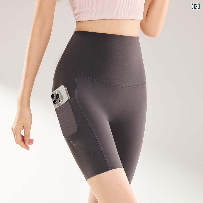ヨガパンツ レディース ショート丈 高 elastic ハイウエスト ヒップアップ スポーツ ウェア ポケット付き ブラック グレー カーキ ネイビー ホワイト ブルー