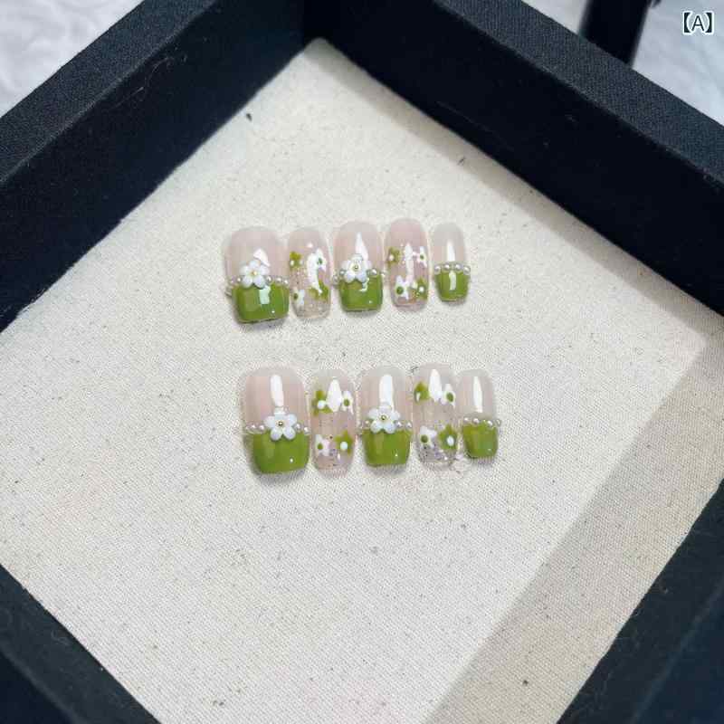 つけ爪 レディース ネイルチップ 短い ショート 付け外し可能 緑 グリーン 花柄 フラワー かわいい おしゃれ 普段使い デート ジェルネイル風