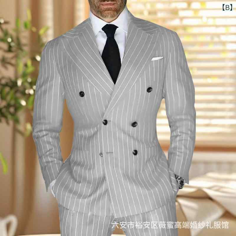 スーツ メンズ ストライプ柄 スリムフィット カジュアル 結婚式 パーティー 二次会 謝恩会 音楽会 舞台衣装 発表会 演奏会 ホワイト グレー ブラック グリーン ネイビー レッド ブルー