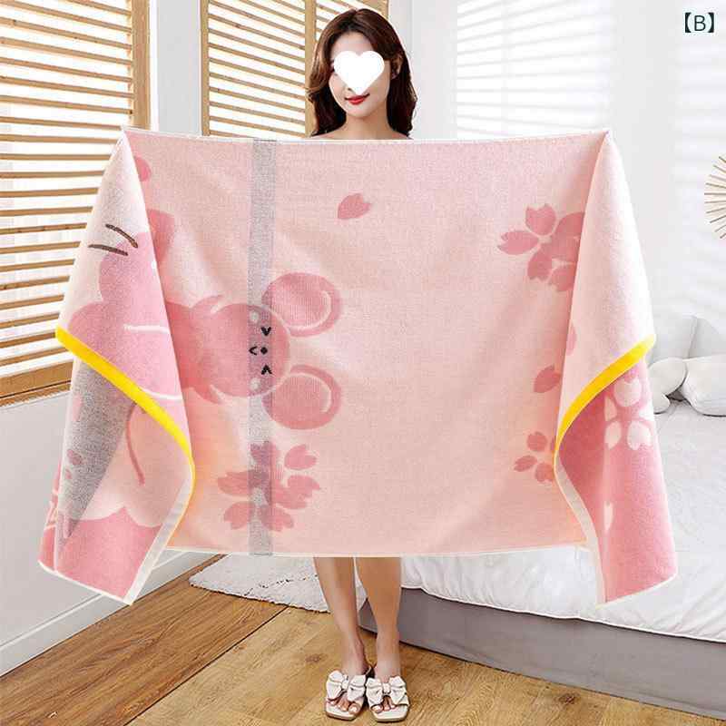 タオル 男女兼用 子供用 バスタオル 綿100% 全綿 吸水 速乾 140cm×70cm 高学年 提花 普段使い 海水浴 プール ビーチ 猫とネズミ柄 ピンク系 グリーン系 レモン ブルー