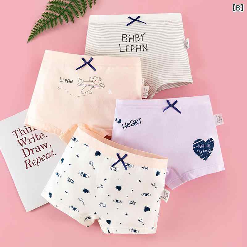 子供服 下着・インナー 女の子 ショーツ 4枚セット 綿 平角パンツ キッズ ベビー ガールズ 女児 子供用 かわいい 快適 通気性 伸縮性 秋冬