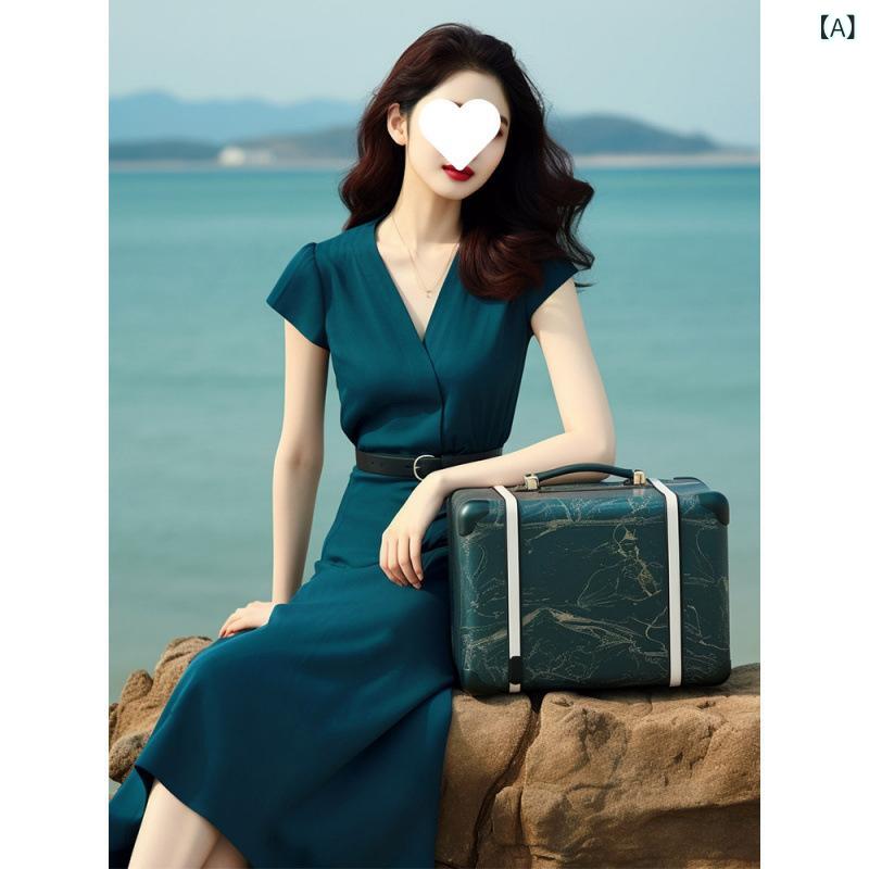 ・素材: ポリエステル・製法: 無地, 繋ぎ合わせ, ジッパー・スタイル: Aラインスカート・組み合わせ形式: ワンピース・スカート丈: ミモレ丈・スカートタイプ: Aライン・ネックライン: Vネック・袖のタイプ: 通常・袖丈: 半袖・流行の要素: 無地, 繋ぎ合わせ, ジッパー・主な生地の組成: ポリエステル95%以上・スタイル: ストリート系・スカート種類: ワンピース・カラー: 孔雀青・サイズ: S, M, L, XL