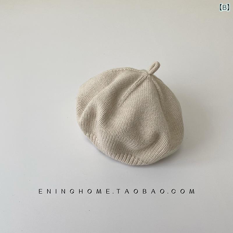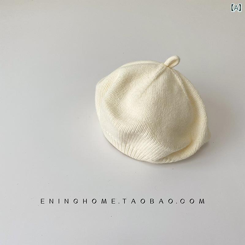 帽子 ベビー キッズ ニット帽 秋冬 春 かわいい 保温 暖かい 赤ちゃん 画家 ベレー帽 乳白色 カーキ色 黄色 クリーム色 緑色 ピンク むらさき色 赤色 黒色 青色(x2)