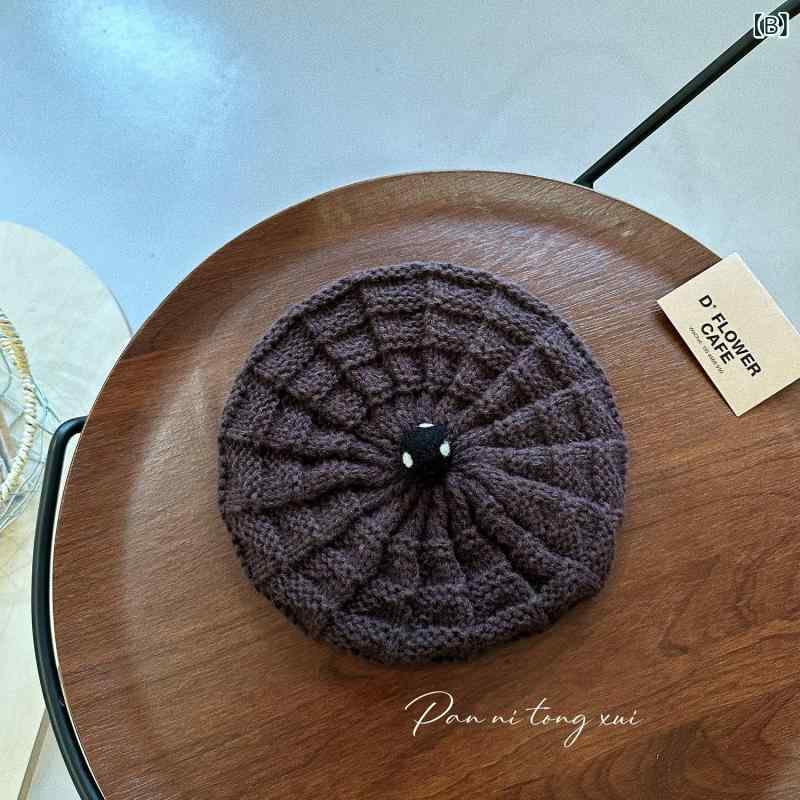 帽子 キッズ ベレー帽 ニット 秋冬 無地 チェック柄 暖かい ウール 女の子 画家 かわいい ベージュ系 カフェ カーキ グリーン グレー