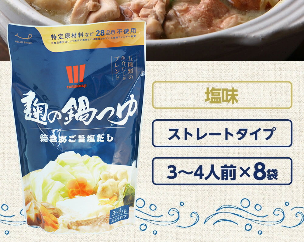 鍋つゆ 無添加『麹の鍋つゆ 塩味8袋セット』1袋3〜4人前 砂糖不使用 鍋の素 グルテンフリー アレルギー対応食 樽の味SALE