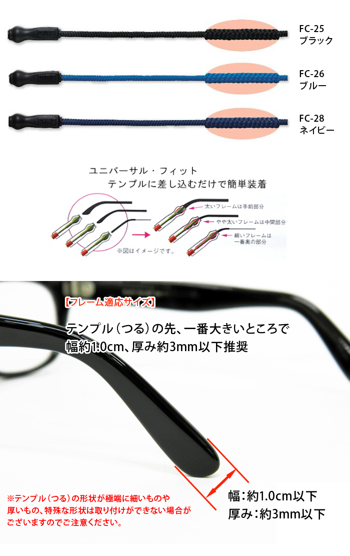 ストッパー付メガネストラップ【CHUMS EYEWEAR RETAINER(チャムス アイウェアリテーナー)ユニバーサルフィット全3色(FC-25、FC-26、FC-28)メガネ・サングラス用】ひもタイプ(メガネチェーン)スポーツ アウトドア メガネの落下防止に★