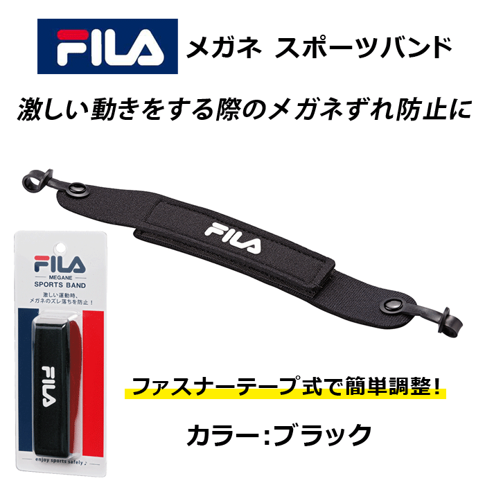 郵送なら送料無料!【FILA フィラ メガネスポーツバンド スポーツベルト ブラック】スポーツ用メガネバンド★ファスナーテープ式で着脱もとっても簡単♪メガネのズレ落ち防止に♪