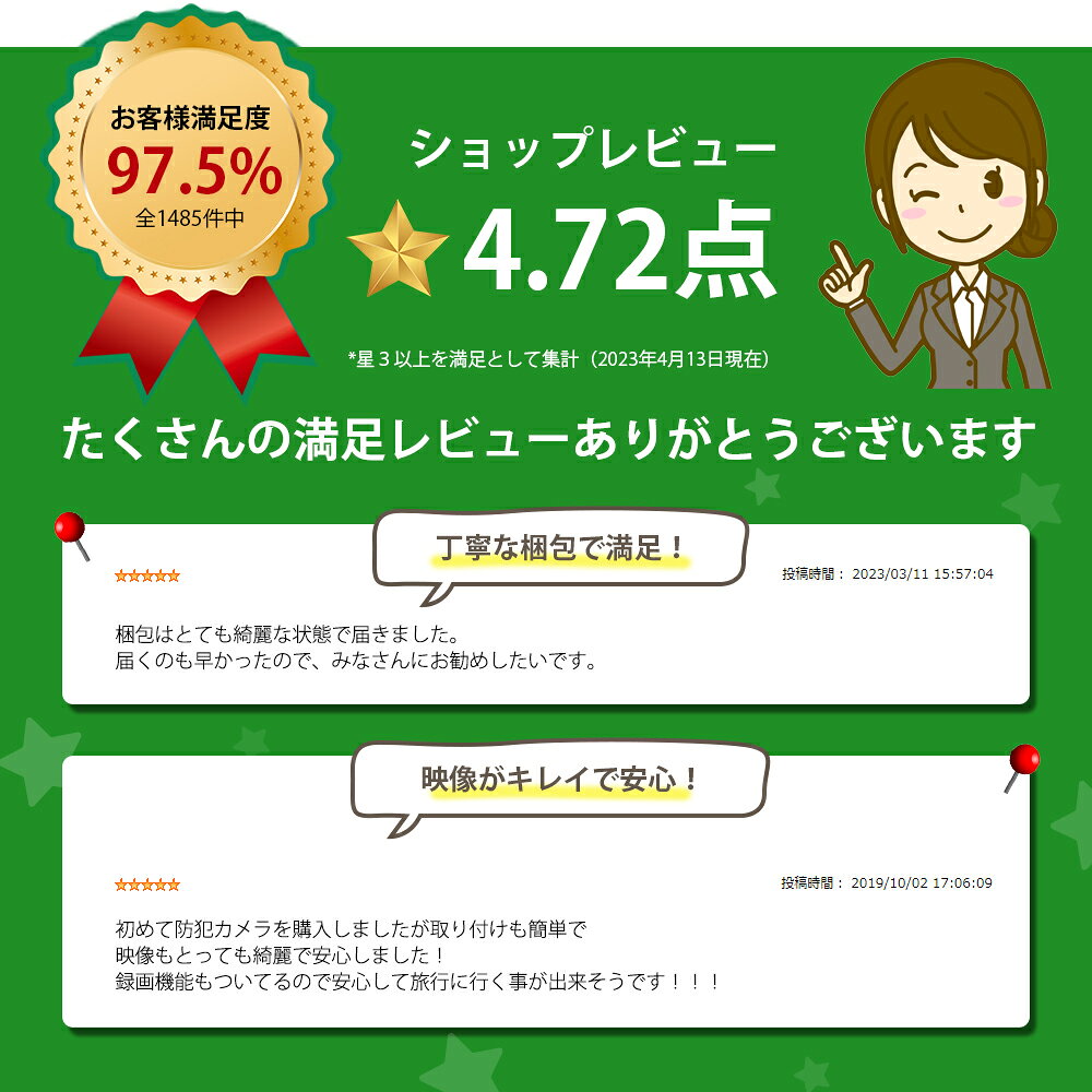 ▼こちらもおすすめ▼ メーカー希望小売価格はメーカーカタログに基づいて掲載しています 商品説明 商品サイズ・素材 外観素材:金属、プラスチック レコーダー部・本体サイズ:横 約30.3cm×縦 約23cm×厚さ 約5.3cm ご注意 1.12インチBタイプのモニターと16インチDタイプモニターはスピーカーが内蔵されておりません。カメラが録音しても、モニターから聞くことができません。(PC/スマホで聞こえます) 2.12インチCタイプのモニターにスピーカーが内蔵されており、モニターからカメラ側の音/録音を聞こえます。 3.【PTZカメラについて】 PTZカメラを本体に増設しますと自動追跡機能が使えなくなります。 4.【映像の録画について】 ご購入時にHDD(ハードディスク機器)をお選びいただきませんと(なしにした場合)、 カメラの映像を録画保存する事ができませんのでご注意ください。 ※オプションのお選び方で迷われたり、ご不明点は、当店までお気軽にご相談ください。 何卒よろしくお願いいたします。 商品説明 フルHD 300万画素/500万画素のお買い得・超簡単設置が可能な当店おすすめの高解像度防犯カメラセットです。増設も最大8台まで可能。カメラの防水性能も高く、アイデア次第で様々なシーンでお使いいただけます。 【高画素】 高感度CMOSとH.265+高圧縮+高画質IPS液晶パネルを採用し、リアルタイム映像や録画再生を鮮明なディテールで視聴できます。 【暗視機能】 IR-CUT暗視機能を搭載、自動的に昼夜撮影モードに切り替わり暗闇で最大30mまで視認できます。 【防水性能】 金属製IP66ケース製で経年劣化に強く、ほこりや雨を効果的に防ぎ、屋内、屋外どちらにも対応します。 【無線・設定簡単】ワイヤレス防犯カメラなので、複雑な配線も不要です。また、プラグ&放送技術によりカメラとモニターに電源を入れるとすぐ使う事ができます。(遠隔監視する場合、LANケーブルでNVRとルーターを接続する必要があります) 【遠隔監視】スマホ、タブレット、PCでアプリをインストールし、インターネットを介して、ラクラクに遠隔視聴します。パソコン2台、スマホ3台同時に監視可能です。 【迅速な対応・充実保証】視認性とWiFiの接続性に優れた防犯カメラセットはPSEと技適取得済みで安心です。 NVR仕様(本体) *モニター解像度:1920×1080 *映像入力: 1080P *映像出力: 1メイン出力(HDMI端子) *HDD:最大6TB HDDまでサポート(3.5インチ内蔵型HDD) *作動温度:−20℃〜60℃ *モーション検知:対応 *再生:4CH&25fps *圧縮方式: H.265+ *電源:12V/3A *液晶パネル駆動方式:IPS *重量:約1.3KG *サイズ:約26x21x4cm *再生時画面表示:最大4画面 パッケージ内容 8CH モニター一体型録画機 ワイヤレス IPカメラ(台数はご選択したオプションによって違います) 1 * 1M電源ケープル 1 * USBマウス 1 * 3m電源延長コード 1 * 7DBIアンテナ(3m) 防犯カメラ ステッカー 配送 日本全国送料無料 保証 品質保証期間:1年 関連キーワード 防犯カメラ 屋内ワイヤレス監視カメラ モニターセット 2台 4台8台 留守ネットワークカメラ 簡単設置 車上荒らし 駐車場 家庭用 遠隔監視 スマホマイク内蔵 防水 IPカメラ Wifi 介護 楽天ランキング 人気 おすすめ 最新外出防犯対策 盗難防止 空き巣 家庭 自宅 マンション アパート オフィス学校 小学校 高校大学 ビニール ハウス 倉庫 車庫 ガレージ 玄関 ゴミ置き場 ゴミ捨て場 いたずら防止 ベランダ 不審者 会社 業務用 玄関 高画質 室内 長時間録画 車 店舗 天井 安い セキュリティ 暗視 手軽 バレット ドーム スマホで監視 wifi対応 録画機セット インターネット不要 龍彦商事 防犯灯 録画機セット 防犯カメラ 防犯カメラ 屋外 防犯カメラ ワイヤレス 屋外 防犯カメラ 屋外 家庭用 防犯カメラ ワイヤレス 屋外 防犯カメラ ワイヤレス aoitrade 防犯カメラ 車上荒らし 防犯カメラ 防犯カメラ 録画機能付き 防犯カメラ ワイヤレス 屋内 防犯カメラ ワイヤレス 防犯カメラ wifi ドアスコープ 防犯カメラ 激安 防犯カメラ yeskamo 防犯カメラ 防犯カメラセット 防犯カメラ 音声 防犯カメラ 録音 監視カメラ wifi 録音 防犯カメラ 人感センサー 防犯カメラ 増設 防犯カメラ 広角 防犯カメラ 無線 監視カメラ 監視カメラ wifi 監視カメラ 屋外 監視カメラ 室内 監視カメラ ワイヤレス 監視カメラ 録画 監視カメラ 動体検知 監視カメラ 無線 防犯カメラ モニター付き防犯カメラ モニターセット下記のカメラも本商品に追加できます。ご興味があれば、下記から詳細をご確認ください。↓↓ カメラ用隙間ケーブルも販売しているます。 ご興味があれば、下記のリンクから購入してください。