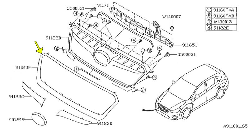 91123FJ130【STI-スバル】【代引不可】インプレッサスポーツハイブリッド用フロントグリルモールSPORTS PARTS for IMPREZA SPORT HYBRID