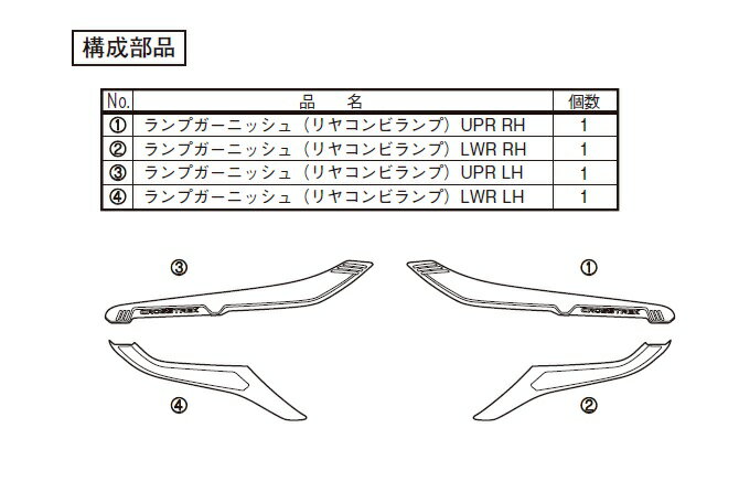 ■商品名:ランプガーニッシュ(リヤコンビランプ) ■品番 :J1017FN460 ■参考適合 :クロストレック(GU)A型 リヤコンビランプのエッジをカバーし、リヤスタイルの力強さを強調するガーニッシュ。 ※硬質ゴム製。 ※適合は、年式・グレードにより異なります。 ※適合につきましては、ご注文前に車台番号を併せてお問い合わせください。 ※画像はイメージ画像を含みます ---スバル・STI製品についてご確認下さい--- 【スバル・STI製品について】 ■仕様、価格、部品番号については、予告なく変更する場合があります。 ■STI/SUBARUウェブサイトで紹介した部品を取り付ける場合は、専門の技術や知識を必要とするものがありますので、取り付に当たっては、スバル特約店の資格認定工場にご依頼ください。 ■パーツリストに示された数量/台は一台分の必要数を示します。表示価格は1個または1セットの部品価格を示し、取付工賃は含まれておりません。 ■各キットまたはセットの構成部品は単品ではお求めになれません。 ■商品によっては複数のものを同時に装着出来ない場合があります。 ■商品によっては、お届けするまでに若干日数を要する場合があります。 ■記載の数値またはデータは測定条件により異なる場合があります。 ■サイト表示の写真の一部は現物と異なる場合があります。 ■STIスポーツパーツを装着してJAF公認モータースポーツイベントに参加する場合はJAF国内競技車両規則の適合確認が必要です。商品によっては装着するとJAF国内車両競技規則により、ラリー等の競技に参加出来ない場合がありますのでご了承ください。 ■STIスポーツパーツを取り付けた事による直接的または間接的に発生した商品および車両等の不具合に対する保証はいたしかねますのでご了承ください。 ■STIスポーツパーツを取り付けた事により、直接的または間接的に発生しうる車両等の不具合に対しまして、富士重工業(株)の車両クレーム保証の対象から外れますのでご注意願います。 ■STIスポーツパーツを取り付ける場合、改造申請を必要とするものがあります。改造許可を受けずに公道を走ると法により罰せられますので、必ず正規の手続きをとってください。 ■新商品及び既販売商品についての詳細は、スバル特約店にお問合わせください。 ---カーパーツご購入前にご確認下さい--- 【お取り寄せについて】 ■スバル・STI製品は当店に在庫がございません。 ■ご注文が確認でき次第メーカー様に発注致します。 ■欠品等、一時的な品切れの場合 …メールにて入荷時期をご案内させていただきます。 入荷時期未定の場合も、再入荷次第商品の発送手配を進めさせていただきます。 ■完売・製造中止等、商品をご用意できない場合 …メールにてその旨ご案内させていただきますが、ご連絡のつかない場合等は当店からご注文をキャンセルさせて頂く場合がございます。 ■当店に商品ページの無い商品も、お取寄せ出来る場合がございます。お気軽にお問い合わせ下さい。 ■画像はイメージ画像を含みます。画像のみで判断してのご購入はご遠慮ください。 【パーツ適合確認のおすすめ】 ■適合確認について ・メールの場合 下記情報をいただければ、メーカーへ適合の確認を行います。 ------------------- ・パーツ名・品番 ・車種名 ・型式 ・年式 ・グレード ・車台番号 ------------------- ・お電話の場合 お手元に車検証をご準備の上お問い合わせ下さい。 パーツの品番や正確な商品名の情報があるとスムーズです。 ・注文確定後及びご注文時の備考欄への適合確認記載の場合、ご返答致しかねます。 必ずご注文前にお問い合わせください。 ■流用に関して ・取付け可能な車と異なる型式や他グレード等は、流用でのお取り付けとなります。 お客様ご自身がお調べの上、自己責任でご購入・取付け頂きますようお願い致します。 ・そのまま装着できるとは限りませんので、お客様の方でディーラーやインターネットなどでご確認・ご判断の上、ご購入ください。 (加工が必要になる場合が恐れがございます) ・適合確認の依頼をいただいても、本来設定のないパーツの適合は取ることができません。 また、取り付けの保証も致しかねますので、あらかじめご了承ください。 あくまでも、「補修部品」での扱いとなりますのでご理解頂けますようお願い致します。 ・当店販売商品は全て日本車専用パーツでございます。 海外車への取付けに関しましては、全て自己責任の上でご判断・ご購入をお願い致します。 ・ご注文確定後に適合不可/取付不可が判明いたしましてもキャンセルはご遠慮いただいております。予めご了承ください。 ・動かない・点灯しない・取り付けられない等不具合がある場合にも、返品交換等は一切ご対応できません。 【返品・交換・キャンセルについて】 ■当店ではご購入後のお客様都合による返品・交換・キャンセルはお断りしております。 ご注文の際は事前に商品適合等を ご確認の上ご注文いただくことを