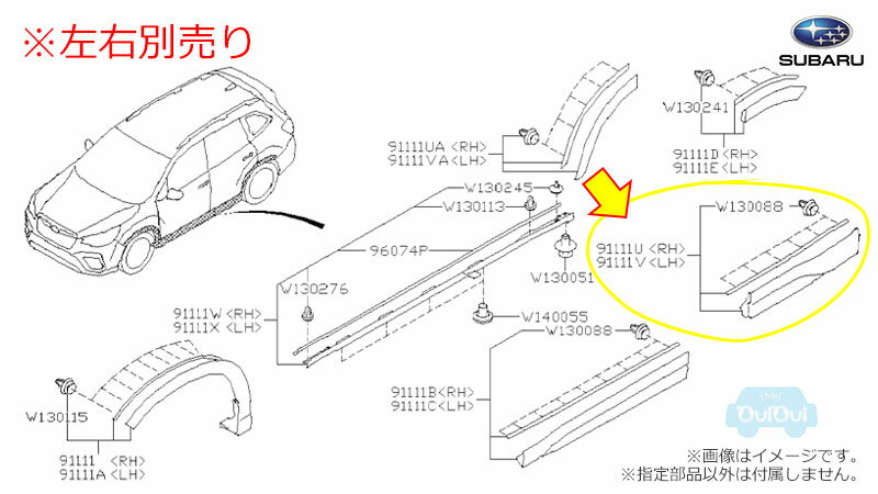 91112SJ720(右)または91112SJ730(左)【スバル純正】サイドクラッディング リヤ/ドアガーニッシュ フォレスター(SK)STI Sport【SUBARU純正部品】純正パーツ 純正部品