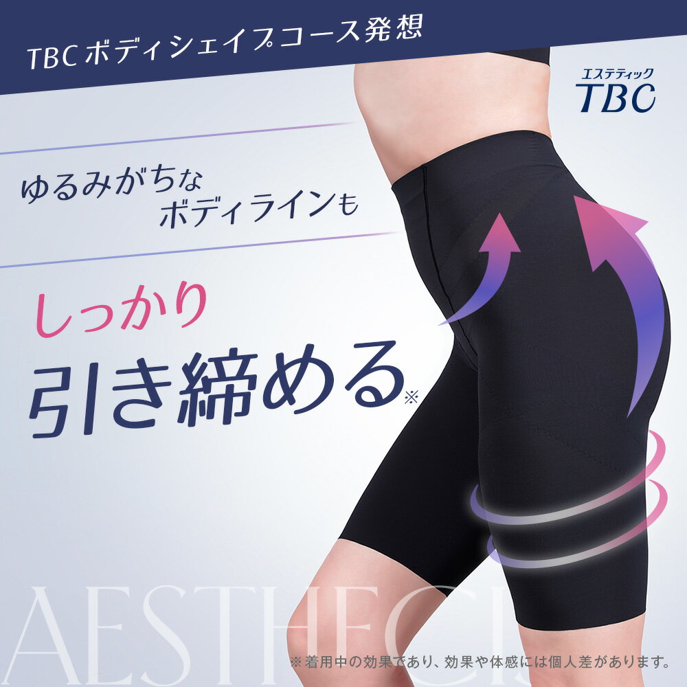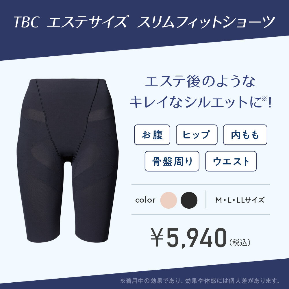 はいて歩いてスタイルアップへ! 【この商品について】 「エステサイズ スリムフィットショーツ」は、TBCボディコース発想で、 ゆるみがちなボディラインもしっかり引き締める※1五分丈補整ショーツです。 強力パワーネットと高伸縮素材でお腹・ウエスト・骨盤・ヒップ・太ももをしっかりサポートし、 エステ後のようなキレイなシルエットに整えます※1。 立体設計のヒップホルダーで、トップをつぶさずキレイなヒップラインに。 ボトムに響きにくい無地のデザインで、裾は食いこみにくいきりっぱなし仕様。 1枚ばきでも、ショーツの上からでも着用できます。 太もも周りの高伸縮素材により、程よく負荷を感じる仕様で、はいて歩く事でエクササイズ効果も期待※1できます。 *腹斜筋上部の筋肉活動量が113.9%にアップ※2 *消費カロリー106.7%にアップ※2 *腹直筋上部の活動量159.2%にアップ※3 *腹斜筋上部の活動量112.6%にアップ※3 *大腿四頭筋外側の活動量105%にアップ※3 *脊柱起立筋の活動量112%にアップ※3 ※1 着用中の効果であり、効果や体感には個人差があります。 ※2 ユニチカガーメンテック株式会社にて測定(2023年2月) 踏み台昇降運動1分時の未着用時と着用時の筋肉活動量の増減率の平均値(被験者30代から40代女性5名) ※3ユニチカガーメンテック株式会社にて測定(2023年11月)踏み台昇降運動を1分行った場合の未着用時と着用時の筋肉活動量の増減率の平均値(被験者30代~50代女性5名) データは一例であり、効果には個人差があります。 【使い方】 1 製品の前後を確認してください。全体をたぐりよせて両端を持ち、はき口をしっかり広げてからゆっくり両足を通してください。 2 ヒップラインを整えながら腰回りまでゆっくりと引き上げ、脚の付け根を合わせます。全体にたるみやねじれを作らないように均等になじませてください。 3 片手をショーツ内側に入れ、お尻を軽く持ち上げてヒップラインに位置を合わせ、お尻のふくらみが丸くキレイにおさまるように整えてください。 4 軽く体を動かしながらウエストやマチ部分のフィット感や、各部位のラインの位置が合っているか確認してください。 【サイズ・注意事項】 サイズ Mウエスト64-70 ヒップ87-95 Lウエスト69-77 ヒップ92-100 LL ウエスト77-85 ヒップ97-105 カラー ブラック・ベージュ ご使用上の注意 ●本製品は着圧の強い仕様となっております。 ●着用の際は、強く引っ張ったり爪やアクセサリーなどで傷つけないようにご注意ください。 ●体に異常を感じた際やサイズが合わなくなった場合は着用をおやめください。 ●手の爪はなめらかにし、商品を傷つける恐れのあるものは取り外してから着用ください。 ●着圧の高い他の商品やストッキングとの併用、まくれた状態での長時間着用はお避けください。 ●着用したまま“しゃがむ”などの同じ姿勢を取り続けないでください。 ●就寝時は着用しないでください。 ●着用中の激しい運動はお控えください。 ●体調がすぐれないときは、着用をお控えください。 ●皮膚にかゆみや炎症が起こった場合は、直ちに着用をおやめください。 洗濯表示 洗濯ネット使用 品質表示 ナイロン75%/ポリウレタン25% ・広告文責:TBCグループ株式会社 050-5578-2514/メーカー:株式会社TBC/生産国:中国/