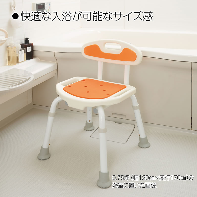 1〜2営業日 ※後払いサービスは50,000円までとなっております。 ※領収書を発行いたします。 サイズ 幅40〜43 奥行41.5〜44 座面高さ32〜44 背もたれ高さ55〜67 色 パイプ部:オフホワイト 座面・背もたれクッション:オレンジ 脚ゴム:グレー 重量 2.4kg 使用者最大体重 100kg 材質 本体:アルミ 座面・背もたれ:ポリプロピレン クッションマット:EVA プッシュボタン:真鍮(スプリング部:ステンレス) ・座面高さは日本人の体形に合わせた、32〜44まで調整可能(2.5ピッチ 6段階) ・クッションは柔らかく、すぐにはヒンヤリとしないEVAクッション ・滑り止め効果抜群の脚ゴム(裏面のトライアングルカットで摩擦力アップ) ・高さ調節はプッシュボタンで簡単に調節できます ・快適な入浴を可能にするサイズ感 ・組み立て簡単! 女性でもドライバー1本で組み立てできます (ドライバーは同梱しておりません) ・お届けする箱の寸法は58×34×10 ・JIS規格に準拠した工学試験を合格した安全設計類似商品はこちら安寿背なしシャワーベンチCPE-N 12,380円介護用 風呂椅子 シャワーチェア 背付・背付シ22,594円シャワーチェア 背なしシャワーイスSC-12 20,009円